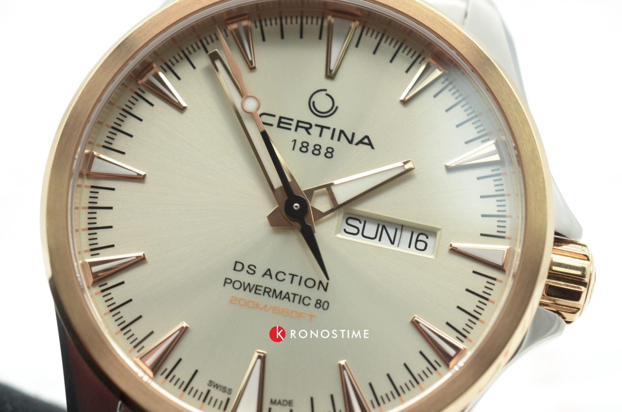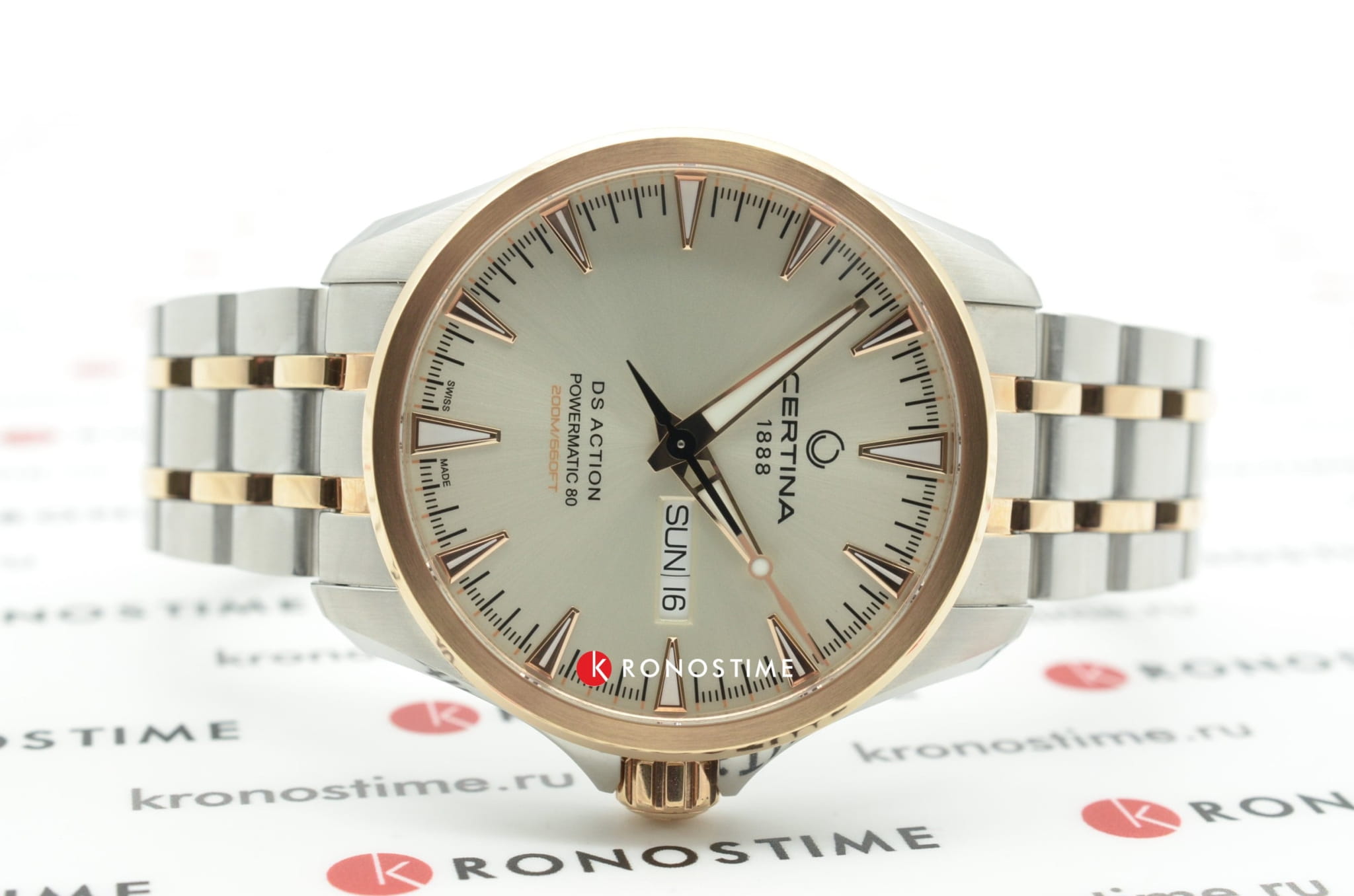 Брендовая модель имеет чёрный циферблат с контрастными стрелками и часовой разметкой, что обеспечивает хорошую читаемость показателей в любых условиях. Стальной браслет надёжно обхватывает запястье, а предотвращает случайное расстёгивание. Часы работают за счёт швейцарского пружинного калибра ETA Powermatic 80Powermatic 80Эксклюзивный калибр от швейцарской компании ETA с увеличенным запасом хода до 80 часов за счёт удлинённой заводной пружины. Характеризуется улучшенной системой спуска со сниженным трением., его запас хода увеличен до 80 часов. Соблюдение DS ConceptDS ConceptDouble Security Concept, обозначает двойную надёжность и безупречную точность часов Certina. Двойная система защиты подразумевает обеспечение максимальной устойчивости к ударам и высоких показателей водонепроницаемости.. Корпус из антикоррозионной стали 316L. PVD-покрытиеPVDУльтратонкое покрытие наносится в технике вакуумного напыления, сочетает в себе нитрид титана особой прочности со слоем золота или оксида хрома. Несёт в себе декоративную или защитную функцию.. Сапфировое стекло с покрытием «антиблик». Водостойкость 200 метров. Подсветка SuperLumiNova®Люминесцентное покрытиеПозволяет считывать показания времени в темноте. Производители наносят на стрелки, часовые индексы, безель или поверхность циферблата светонакопительный состав, дающий холодное свечение.. Закручивающаяся задняя крышка. Защищённая заводная головка. Календарь с индикацией числа и дня недели. Диаметр корпуса: 41 мм.