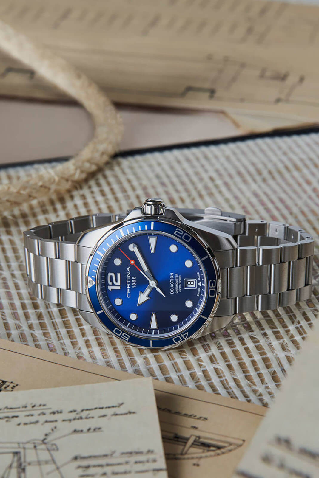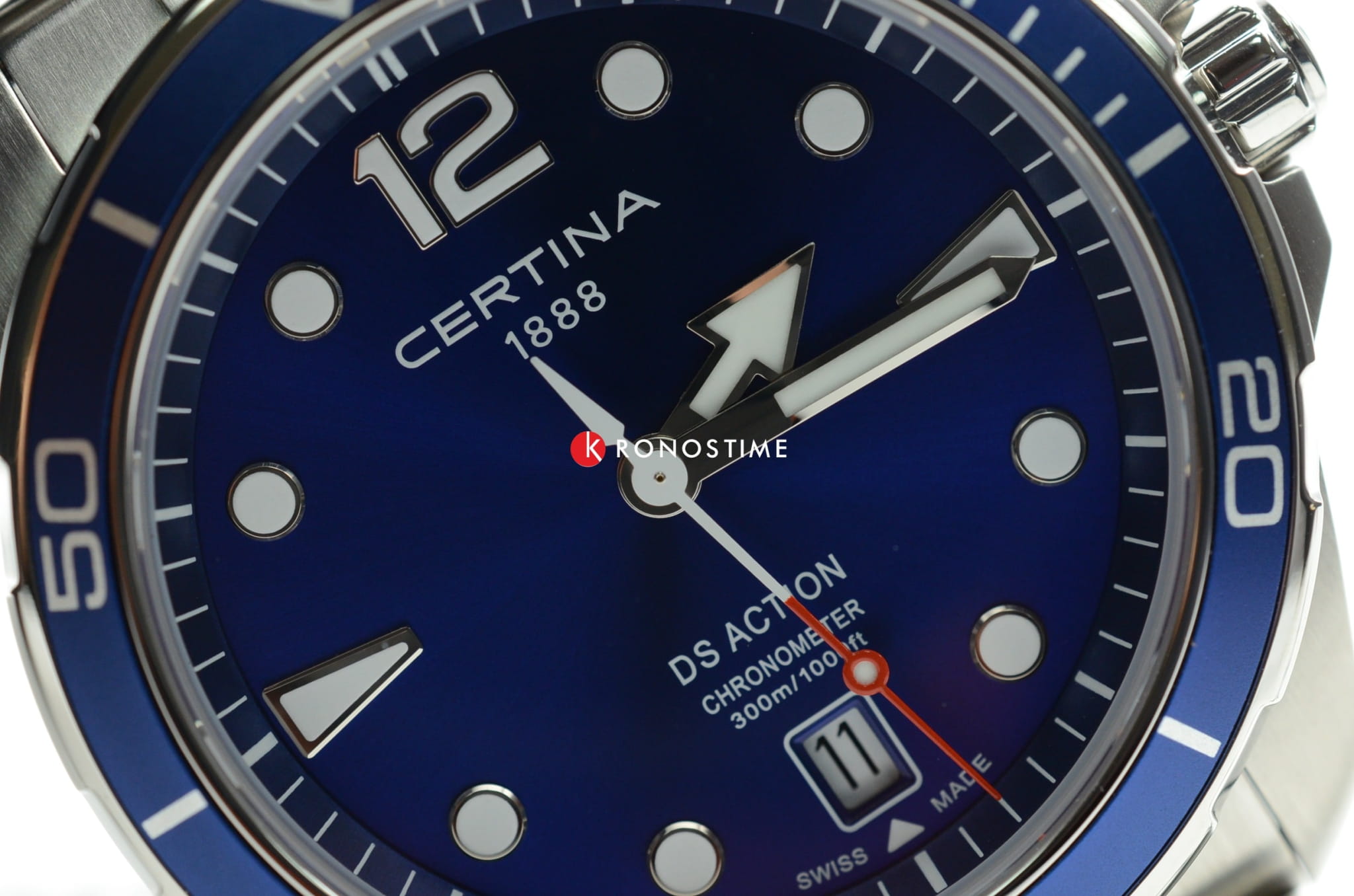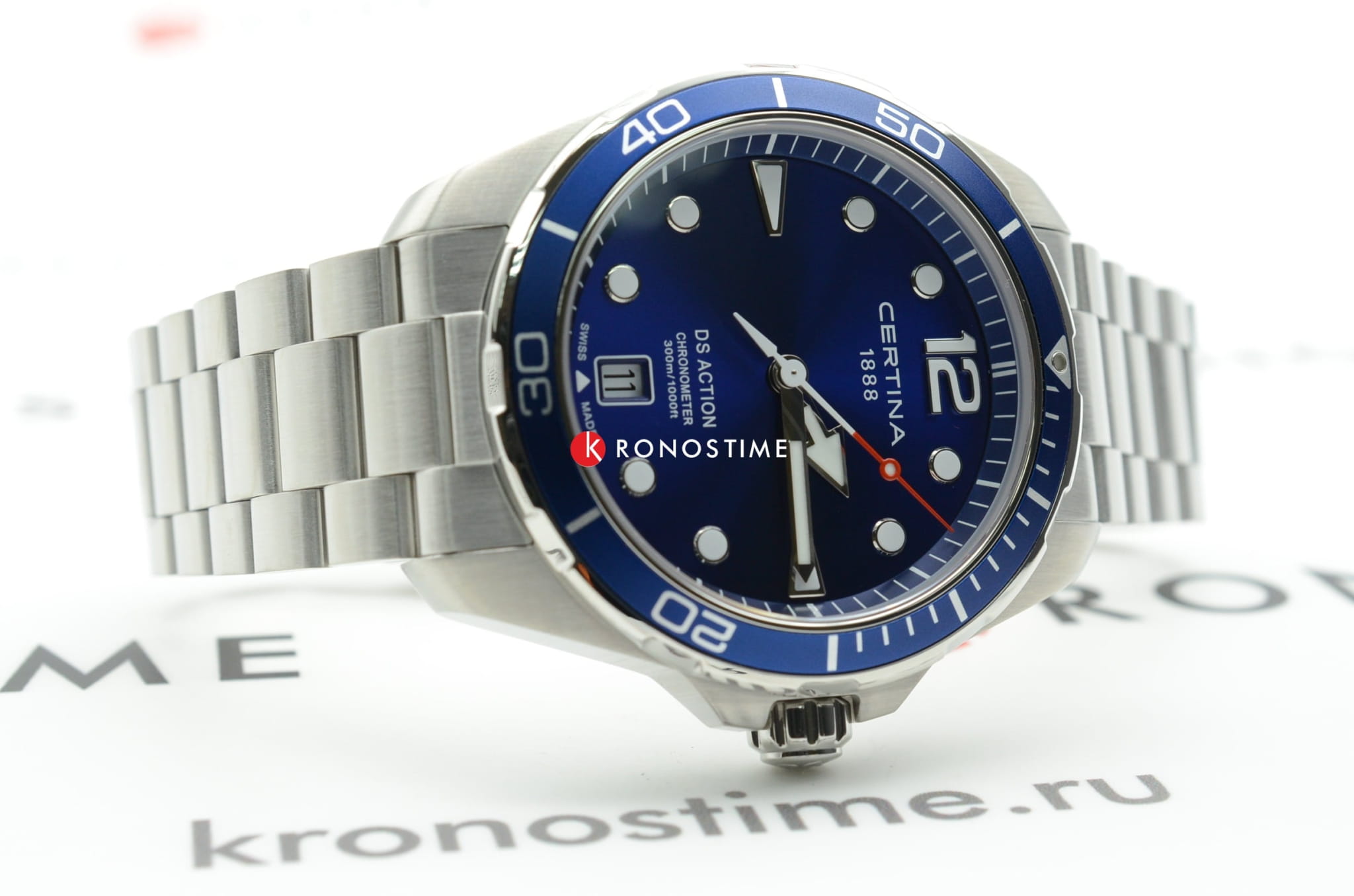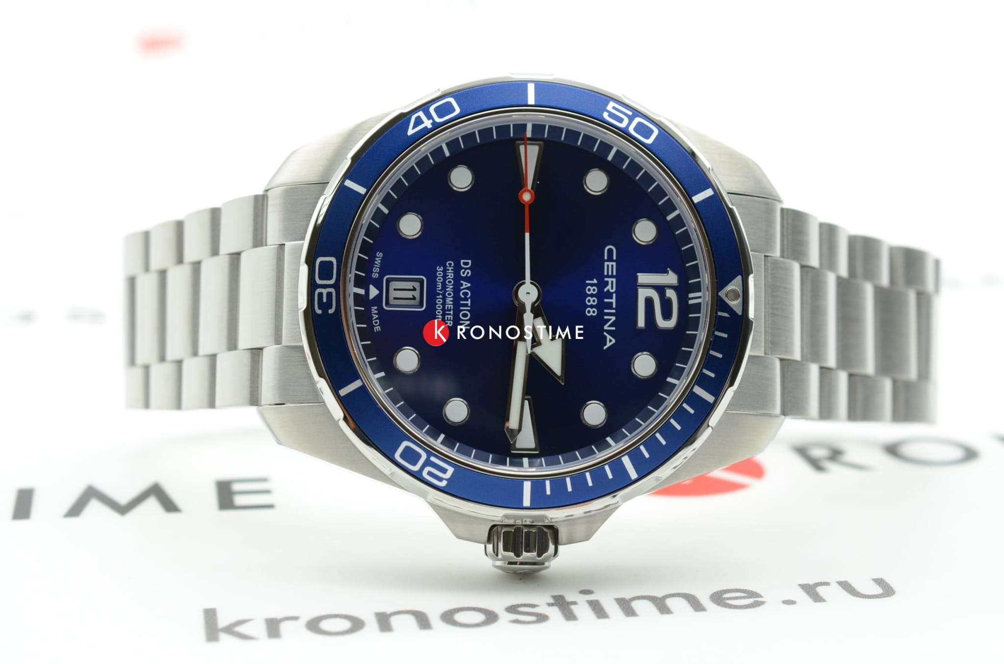 Брендовый аксессуар с насыщенно-синим циферблатом - идеальное дополнение как к деловому, так и к повседневному стилю. Модель отличается предельной точностью швейцарского кварцевого механизма ETA F07.412 Precidrive™Precidrive™Инновационный кварцевый механизм Certina. Часы, оснащённые этим швейцарским калибром, приравниваются к точности к сертифицированным хронометрам, точность хода составляет +/-10 секунд в год., что подтверждается официальным сертификатом COSCСертификат COSCОфициальный сертификат, подтверждающий то, что часы ходят с особо высокой точностью. Для получения документа часы подвергаются тестовым испытаниям, разработанным швейцарским институтом тестирования хронометров COSC. Допустимая норма для механических часов -4/+6 секунд в день, для кварцевых моделей +/- 0,07 секунд в день.. Высокое качество проявляет себя невооружённым глазом: стальной ударопрочный корпусУдаропрочный корпусМеханизм заключён в корпус, выполненный из современных материалов, устойчивых к ударам, механическим повреждениям и падению с высоты: инновационный пластик, карбон, нержавеющая сталь, титан., водонепроницаемость до 30 бар, сапфировое стекло, устойчивое к образованию царапин, реализация фирменной разработки DS Concept DS ConceptDouble Security Concept, обозначает двойную надёжность и безупречную точность часов Certina. Двойная система защиты подразумевает обеспечение максимальной устойчивости к ударам и высоких показателей водонепроницаемости.. Завинчивающаяся заводная головка с защитой. Закручивающиеся кнопки и задняя крышка. Одностороннее антибликовое покрытие для стекла. Вращающийся безельБезельВнешний ободок, закрепляющий стекло. В спортивных часах так называется поворотное кольцо с делениями на циферблате, выполняет роль таймера – замеряет отрезки времени на шкале. Неподвижный безель – элемент декора. Однонаправленно вращающийся безель на дайверских часах позволяет фиксировать моменты погружения и выныривания на поверхность. из синего алюминия. Отображение текущего числа. Индикатор EOLEOLПредставляет собой систему, уведомляющую владельца часов о необходимости замены элемента питания. За 2 недели до полного разряда батарейки секундная стрелка перестаёт ходить чётко и начинает перепрыгивать на 3-4 деления.. Дайверская застёжка с фиксатором и специальным удлинениемУдлинение для дайверовЗастёжка с удлинением для дайверов представляет собой безопасное крепление, которое позволяет надевать часы поверх гидрокостюма. Гибкая застёжка удлиняется на 1-2 миллиметра.. Диаметр корпуса: 43 мм.