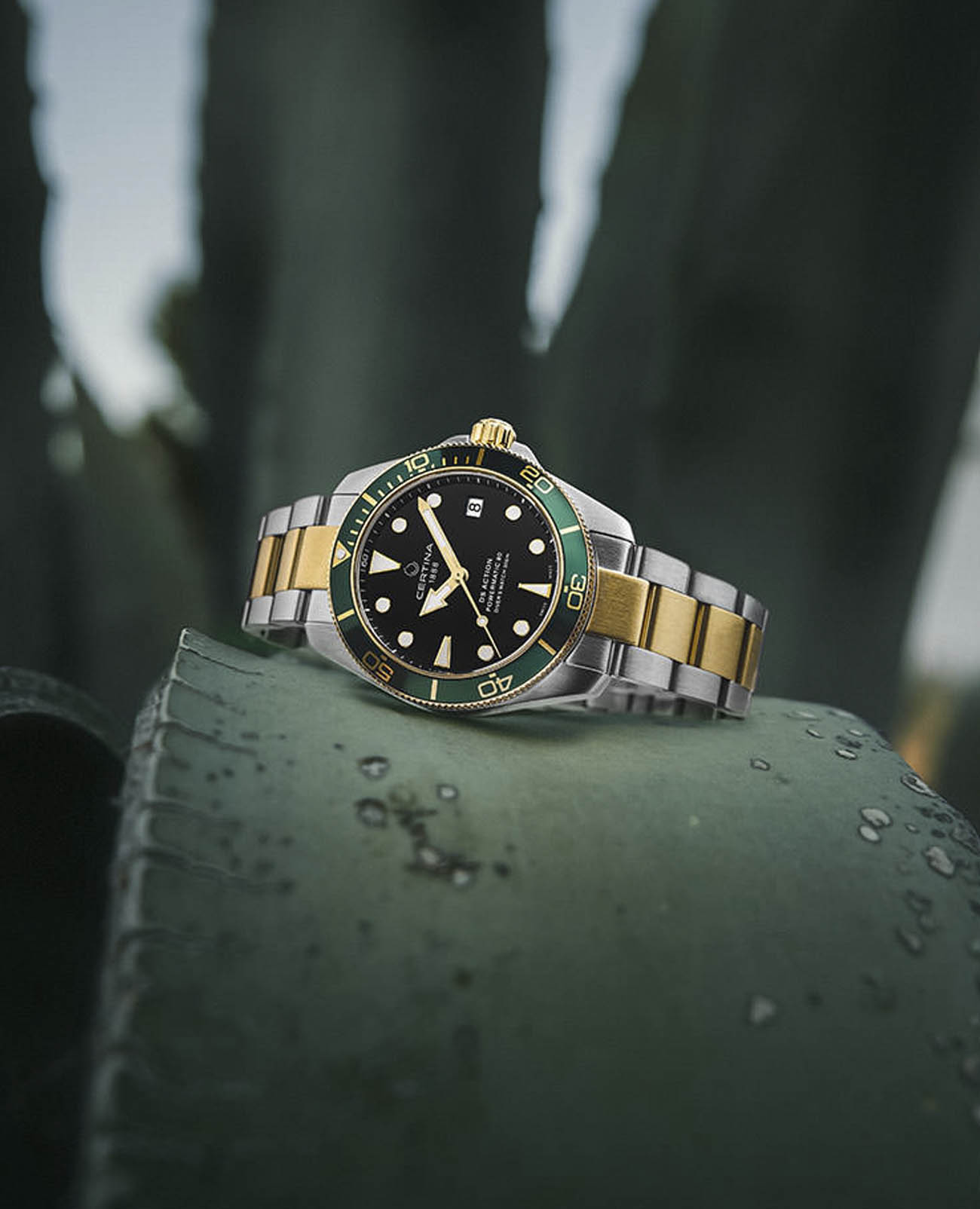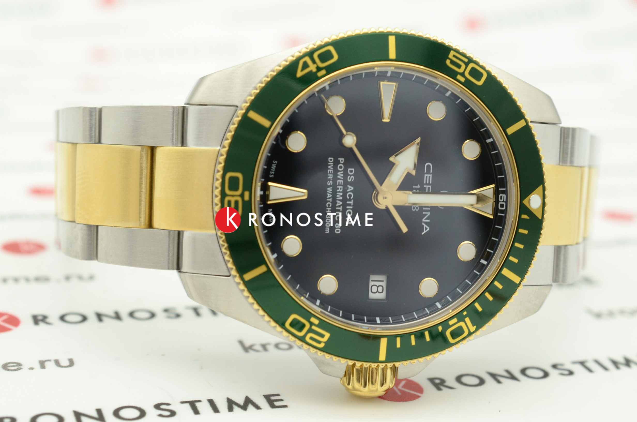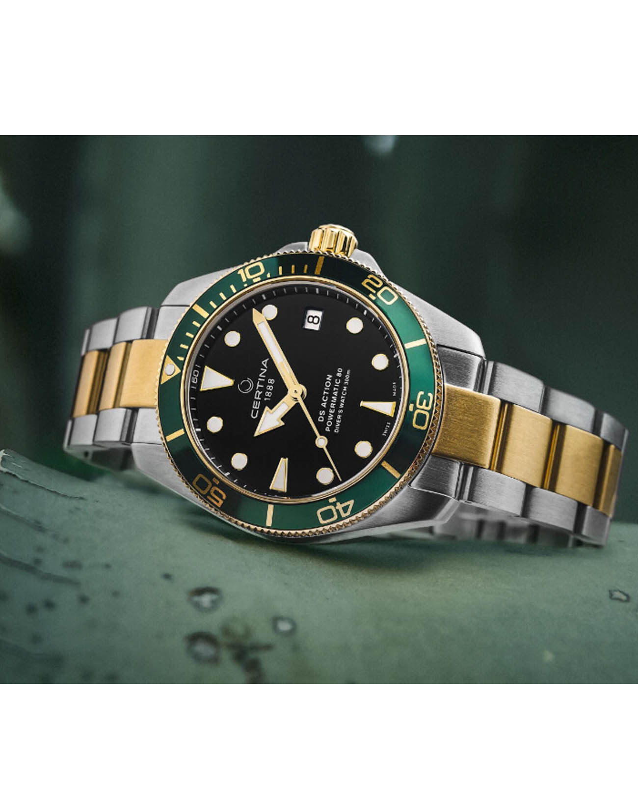 Швейцарские мужские механические часы Certina DS Action Diver 80 C0328072205101 из коллекции DS Action отражают непревзойдённый стиль с дайверским характером. Модель имеет яркий акцент в виде комбинированного циферблата. Крупная индикация времени позволяет считывать показания с циферблата в любой ситуации. Автоматический швейцарский калибр ETA Powermatic 80Powermatic 80Эксклюзивный калибр от швейцарской компании ETA с увеличенным запасом хода до 80 часов за счёт удлинённой заводной пружины. Характеризуется улучшенной системой спуска со сниженным трением. с резервом хода на 80 часов. Концепция DS ConceptDS ConceptDouble Security Concept, обозначает двойную надёжность и безупречную точность часов Certina. Двойная система защиты подразумевает обеспечение максимальной устойчивости к ударам и высоких показателей водонепроницаемости.. Сапфировое стекло. Алюминиевый вращающийся безельБезельВнешний ободок, закрепляющий стекло. В спортивных часах так называется поворотное кольцо с делениями на циферблате, выполняет роль таймера – замеряет отрезки времени на шкале. Неподвижный безель – элемент декора. Однонаправленно вращающийся безель на дайверских часах позволяет фиксировать моменты погружения и выныривания на поверхность.. Водонепроницаемость 300 метров. Люминесцентная подсветкаЛюминесцентное покрытиеПозволяет считывать показания времени в темноте. Производители наносят на стрелки, часовые индексы, безель или поверхность циферблата светонакопительный состав, дающий холодное свечение.. Стальной браслет с застёжкой, имеющей удлинение для дайверовУдлинение для дайверовЗастёжка с удлинением для дайверов представляет собой безопасное крепление, которое позволяет надевать часы поверх гидрокостюма. Гибкая застёжка удлиняется на 1-2 миллиметра.. Апертура даты. Диаметр корпуса: 38 мм. Производство и сборка: Швейцария.
