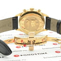 Модель, благодаря классической цветовой гамме и отсутствию броских деталей, станет универсальным аксессуаром к вашему образу. Брендовый хронографХронографФункция позволяет измерять отрезки времени с особой точностью: часы, минуты, секунды. Верным признаком хронографа является наличие на циферблате 3 дополнительных окошек-счётчиков. измеряет время с высокой точностью, что обеспечивает швейцарский кварцевый калибр ETA G10.962 Precidrive™Precidrive™Инновационный кварцевый механизм Certina. Часы, оснащённые этим швейцарским калибром, приравниваются к точности к сертифицированным хронометрам, точность хода составляет +/-10 секунд в год.. Ремешок из натуральной кожи. Сапфировое стекло с двухсторонним антибликовым покрытием. Корпус из нержавеющей стали 316L с PVD-покрытием.PVDУльтратонкое покрытие наносится в технике вакуумного напыления, сочетает в себе нитрид титана особой прочности со слоем золота или оксида хрома. Несёт в себе декоративную или защитную функцию.. Водостойкость 10 бар. Люминесцентная подсветкаЛюминесцентное покрытиеПозволяет считывать показания времени в темноте. Производители наносят на стрелки, часовые индексы, безель или поверхность циферблата светонакопительный состав, дающий холодное свечение.. Задняя крышка с гравировкой. Секундомер, дата, индикатор EOLEOLПредставляет собой систему, уведомляющую владельца часов о необходимости замены элемента питания. За 2 недели до полного разряда батарейки секундная стрелка перестаёт ходить чётко и начинает перепрыгивать на 3-4 деления., отображение лунных фаз. Диаметр корпуса: 41 мм.