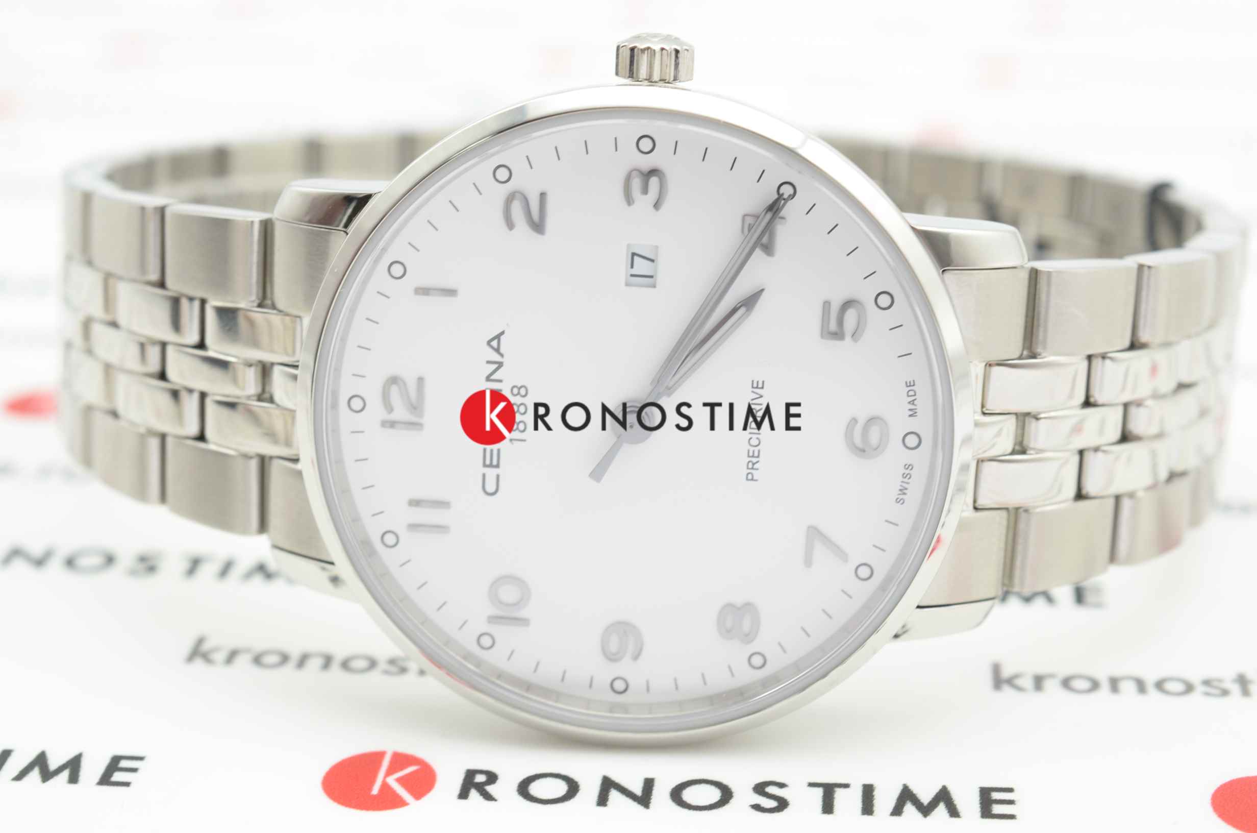 Часы выполнены в классическом дизайне, модель останется актуальной на долгие годы. Лаконичный светлый циферблат дополнен контрастными арабскими цифрами, что позволяет видеть время даже при мимолётном взгляде на запястье. Аксессуар оснащён швейцарским кварцевым калибром Precidrive™Precidrive™Инновационный кварцевый механизм Certina. Часы, оснащённые этим швейцарским калибром, приравниваются к точности к сертифицированным хронометрам, точность хода составляет +/-10 секунд в год., его точность приравнивается к сертифицированным хронометрам. Наручные часы основаны на концепции DS ConceptDS ConceptDouble Security Concept, обозначает двойную надёжность и безупречную точность часов Certina. Двойная система защиты подразумевает обеспечение максимальной устойчивости к ударам и высоких показателей водонепроницаемости., они отличаются ударопрочностью и водостойкостью до 10 бар. Сапфировое стекло имеет одностороннюю антибликовую обработку, уменьшающую отражение света в 10 раз. Стрелки дополнены люминесцентным покрытиемЛюминесцентное покрытиеПозволяет считывать показания времени в темноте. Производители наносят на стрелки, часовые индексы, безель или поверхность циферблата светонакопительный состав, дающий холодное свечение.. Для изготовления корпуса и браслета была выбрана нержавеющая сталь 316L. Функции: отображение даты, EOLEOLПредставляет собой систему, уведомляющую владельца часов о необходимости замены элемента питания. За 2 недели до полного разряда батарейки секундная стрелка перестаёт ходить чётко и начинает перепрыгивать на 3-4 деления.. Диаметр корпуса: 39 мм.