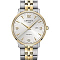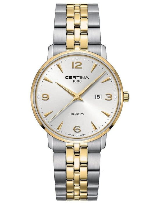 Женские швейцарские часы Certina C0352102203702 из коллекции DS Caimano подойдут к повседневному образу. Лаконичный облик всегда будет в моде. Швейцарский кварцевый калибр ETA F03411 Precidrive™Precidrive™Инновационный кварцевый механизм Certina. Часы, оснащённые этим швейцарским калибром, приравниваются к точности к сертифицированным хронометрам, точность хода составляет +/-10 секунд в год.. Система DS ConceptDS ConceptDouble Security Concept, обозначает двойную надёжность и безупречную точность часов Certina. Двойная система защиты подразумевает обеспечение максимальной устойчивости к ударам и высоких показателей водонепроницаемости. Частичное PVD-покрытиеPVDУльтратонкое покрытие наносится в технике вакуумного напыления, сочетает в себе нитрид титана особой прочности со слоем золота или оксида хрома. Несёт в себе декоративную или защитную функцию. цвета жёлтого золота. Антибликовое покрытие сапфирового стекла Окошко даты, индикатор EOLEOLПредставляет собой систему, уведомляющую владельца часов о необходимости замены элемента питания. За 2 недели до полного разряда батарейки секундная стрелка перестаёт ходить чётко и начинает перепрыгивать на 3-4 деления. Водостойкость до 10 бар. Производство и сборка: Швейцария.