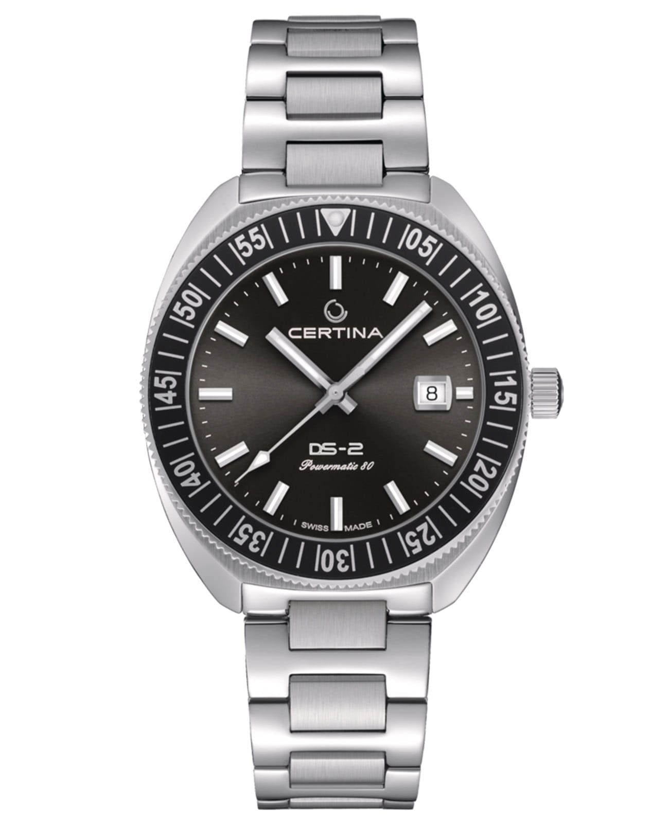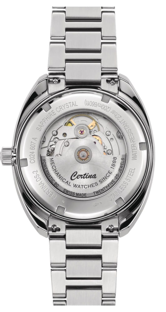 Мужские швейцарские механические часы с автоподзаводом Certina DS Action Diver C024.607.11.081.02, механический механизм (автоматический калибр) с высокой точностью. Сапфировое стеклоСапфировое стеклоПрочный и надёжный материал из кристалла сапфира синтетического происхождения, характеризующийся особой твёрдостью и устойчивостью к царапинам и повреждениям. устойчивое к появлению царапин, обладающее высокой прозрачностью. БезельБезельВнешний ободок, закрепляющий стекло. В спортивных часах так называется поворотное кольцо с делениями на циферблате, выполняет роль таймера – замеряет отрезки времени на шкале. Неподвижный безель – элемент декора. Однонаправленно вращающийся безель на дайверских часах позволяет фиксировать моменты погружения и выныривания на поверхность. из стали и алюминия. Класс водозащиты: 200 метров, позволит плавать, нырять и заниматься другими водными видами спорта. Корпус часов изготовлен из нержавеющей стали.