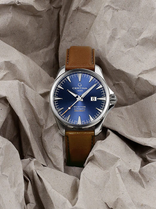 Классическая модель имеет насыщенно-синий циферблат, дополненный крупными индексами. Это обеспечивает оптимальную читаемость данных под любым углом. Ремешок из натуральной кожи актуален уже не первое десятилетие. Высокая точность хода обеспечивается швейцарским автоматическим механизмом ETA Powermatic 80Powermatic 80Эксклюзивный калибр от швейцарской компании ETA с увеличенным запасом хода до 80 часов за счёт удлинённой заводной пружины. Характеризуется улучшенной системой спуска со сниженным трением. с запасом хода 80 часов. Завинчивающаяся задняя крышка сделана прозрачной. Стекло из сапфира с антибликовым покрытием. Заводная головка с защитой. DS ConceptDS ConceptDouble Security Concept, обозначает двойную надёжность и безупречную точность часов Certina. Двойная система защиты подразумевает обеспечение максимальной устойчивости к ударам и высоких показателей водонепроницаемости.. Водонепроницаемость 200 метров. Люминесцентная подсветкаЛюминесцентное покрытиеПозволяет считывать показания времени в темноте. Производители наносят на стрелки, часовые индексы, безель или поверхность циферблата светонакопительный состав, дающий холодное свечение.. Безопасная . Указатель дня недели и даты. Диаметр корпуса: 41 мм.