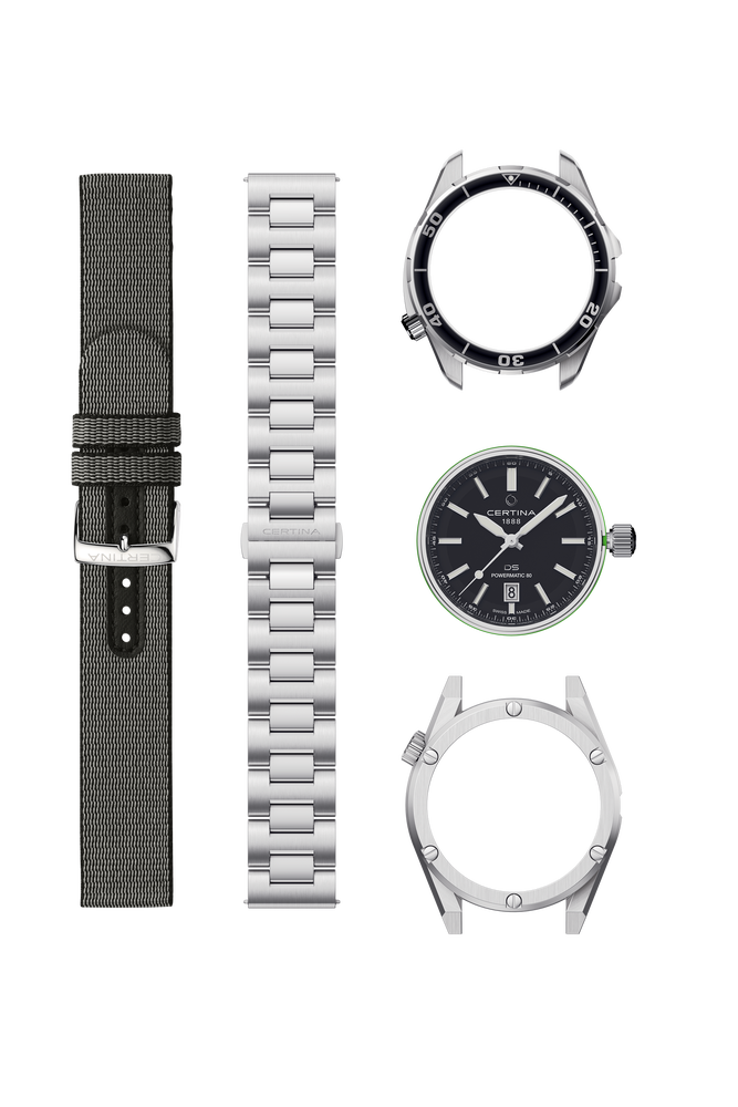 Мужские швейцарские модульные часы Certina DS+ C041.407.19.051.00. Модель DS+ представляет новую концепцию от Certina: часы с возможностью выбора не только ремешка, но и формы корпуса для создания кастомизированного аксессуара. Секрет DS+ заключается в конструкции, состоящей из трех частей: модуля механизма с циферблатом, корпуса и ремешка. Каждый из трех элементов представляет собой самостоятельную единицу. Модуль механизма круглой формы комбинируется с корпусами из нержавеющей стали и надежно закрепляется с помощью заводной головки на корпусе. Инновационная прокладка из биоматериала обеспечивает идеальное уплотнение. Ушки, расположенные на корпусе, позволяют использовать систему быстрой замены Certina для крепления выбранного ремешка. Современный механизм PowermaticPowermatic 80Эксклюзивный калибр от швейцарской компании ETA с увеличенным запасом хода до 80 часов за счёт удлинённой заводной пружины. Характеризуется улучшенной системой спуска со сниженным трением. с 80-часовым запасом хода и пружиной баланса NivachronTM. Наряду с часовой, минутной и секундной стрелками часы имеют окошко даты на отметке «6 часов». Благодаря сверхпрочной конструкции с завинчивающейся задней крышкой и завинчивающейся заводной головкой, часы обладают водонепроницаемостью до 20 бар (200 м). Сапфировое стекло устойчивое к появлению царапин, обладающее высокой прозрачностью. При изготовлении упаковки используются только перерабатываемые материалы – в полном соответствии с поставленными компанией целями устойчивого развития.