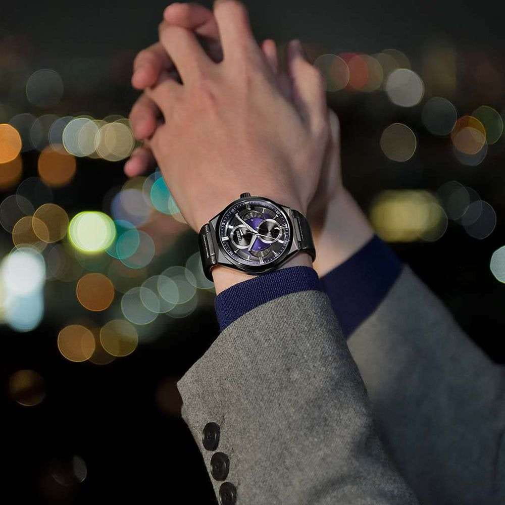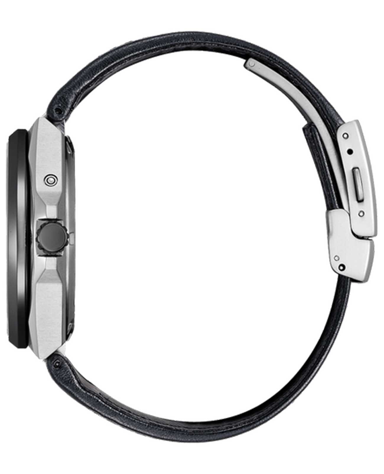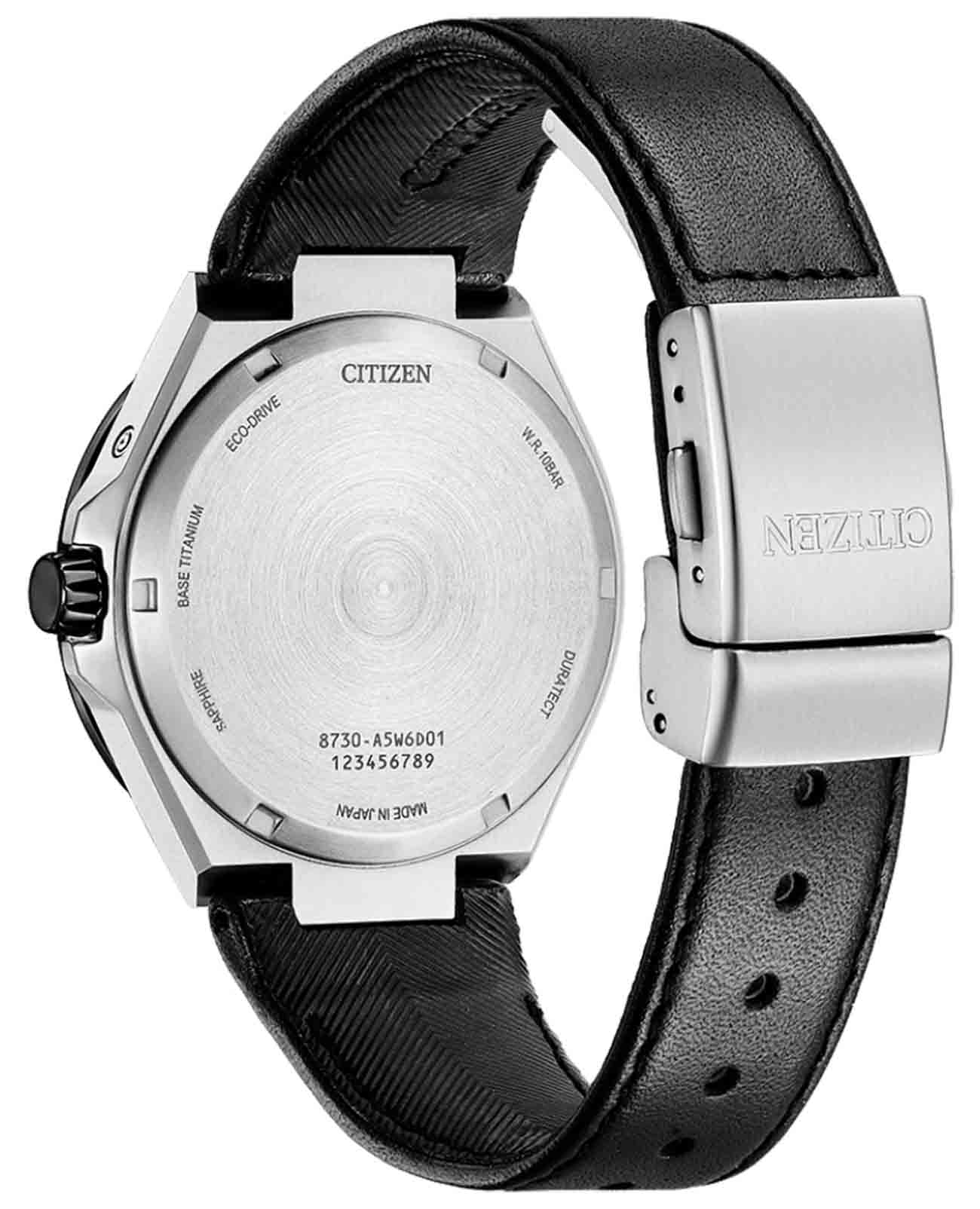 Японские часы Citizen BU0066-11W сочетают в себе современные технологии и элегантный дизайн. Модель оснащена надежным кварцевым механизмом с инновационной системой Eco-Drive, которая работает на солнечной энергии и не требует замены батарейки, обеспечивая запас хода до 180 дней. Дополнительные функции включают индикацию даты, дня недели, месяца, а также фаз Луны. Специальный индикатор заряда и система предотвращения перезарядки гарантируют стабильную работу часов. Корпус выполнен из легкого и прочного титана диаметром 42 мм, а устойчивое к царапинам сапфировое стеклоСапфировое стеклоПрочный и надёжный материал из кристалла сапфира синтетического происхождения, характеризующийся особой твёрдостью и устойчивостью к царапинам и повреждениям. надежно защищает циферблат. БезельБезельВнешний ободок, закрепляющий стекло. В спортивных часах так называется поворотное кольцо с делениями на циферблате, выполняет роль таймера – замеряет отрезки времени на шкале. Неподвижный безель – элемент декора. Однонаправленно вращающийся безель на дайверских часах позволяет фиксировать моменты погружения и выныривания на поверхность. с элегантным черным DLC-покрытиемDLC-покрытиеDiamond like carbon - одно из лучших видов покрытия, представляющее собой углерод с алмазными свойствами. На поверхность материала наносятся распавшиеся молекулы углерода, превращающиеся в плёнку из алмазоподобных связей, которая перенимает твёрдость алмаза.. Водостойкость уровня WR 100 позволяет использовать часы при плавании и в повседневной жизни. Черный кожаный ремешок подчеркивает солидный внешний вид модели. Стрелки с люминесцентным покрытиемЛюминесцентное покрытиеПозволяет считывать показания времени в темноте. Производители наносят на стрелки, часовые индексы, безель или поверхность циферблата светонакопительный состав, дающий холодное свечение. позволяют легко считывать время даже в условиях недостаточного освещения.
