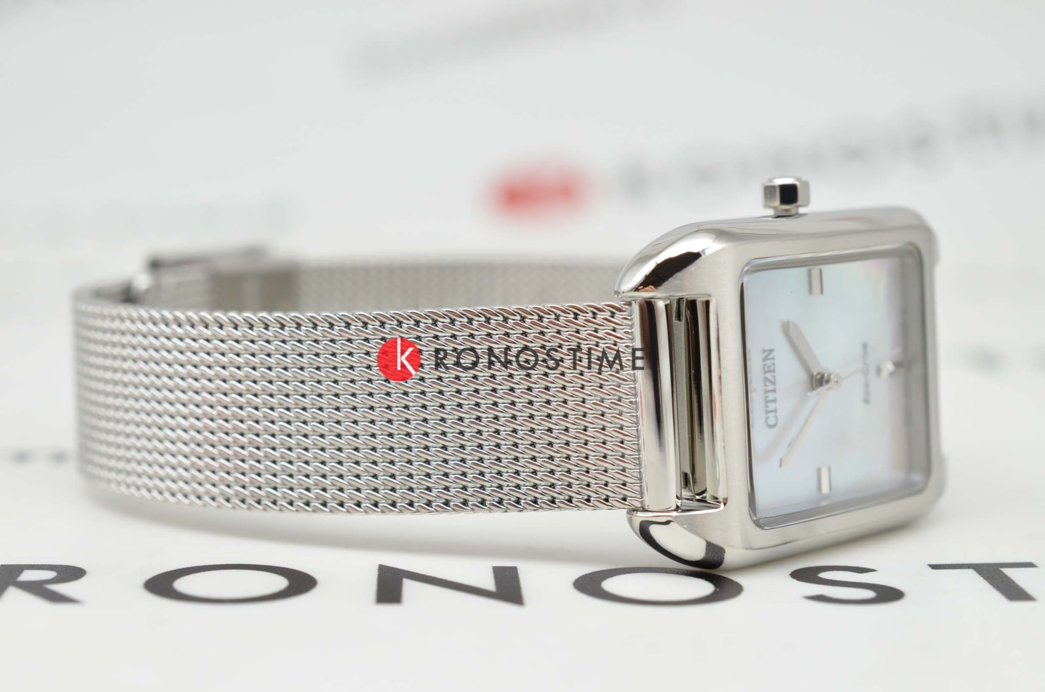 Часы Citizen EM0491-81D созданы для тех, кто ценит элегантность и современные технологии в одном аксессуаре. Корпус выполнен из прочной нержавеющей стали и гармонично сочетается с изысканным стальным браслетом миланского плетения с раскладным замкомРаскладной замокДанный вариант застежки используется только на часах с металлическим браслетом. Отличительная особенность такого крепления в том, что длина браслета становится универсальной и вы можете самостоятельно отрегулировать нужный вам размер – застежка просто двигается по браслету часов., обеспечивающим комфортную посадку на запястье. Особое внимание привлекает перламутровый белый циферблат, украшенный мерцающими кристаллами, которые придают часам особый шарм и изысканность. Метки выполнены в виде аккуратных штрихов, что обеспечивает лёгкое считывание времени. Часы оснащены надёжным кварцевым механизмом Citizen E031 с инновационной системой Eco-Drive, которая позволяет заряжать устройство от любого источника света и не требует замены батарейки. Запас хода составляет до 180 дней, а функция индикации заряда EOLEOLПредставляет собой систему, уведомляющую владельца часов о необходимости замены элемента питания. За 2 недели до полного разряда батарейки секундная стрелка перестаёт ходить чётко и начинает перепрыгивать на 3-4 деления. своевременно напомнит о необходимости подзарядки. Прочное минеральное стеклоМинеральное стеклоМинеральное стекло представляет собой искусственно выращенный минерал кварца. Такое стекло отличается особой устойчивостью к повреждениям и царапинам. Уступает по некоторым качествам сапфировому стеклу. защищает циферблат от царапин и повреждений, а водозащита до 30 метров позволяет не беспокоиться о случайных брызгах воды. Размер корпуса составляет 24 х 32 мм. Лёгкий вес всего 42 грамма, толщина корпуса 7,7 мм и ширина браслета 14 мм делают эту модель удобной для повседневного ношения и подчёркивают стильный образ.