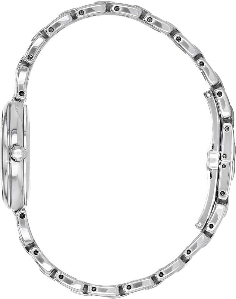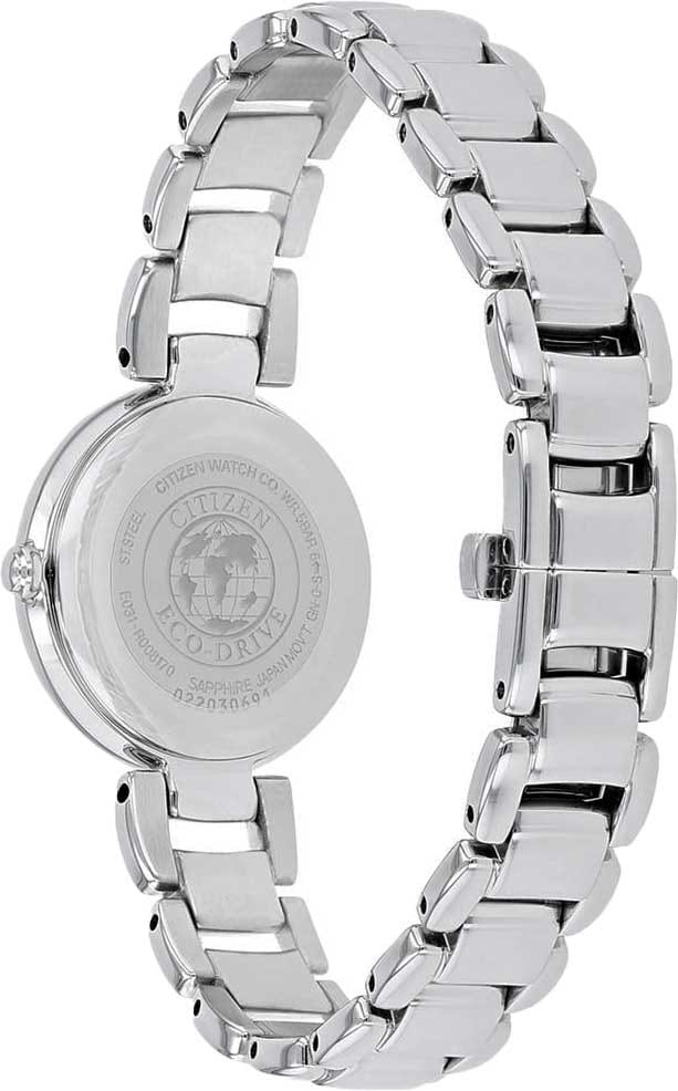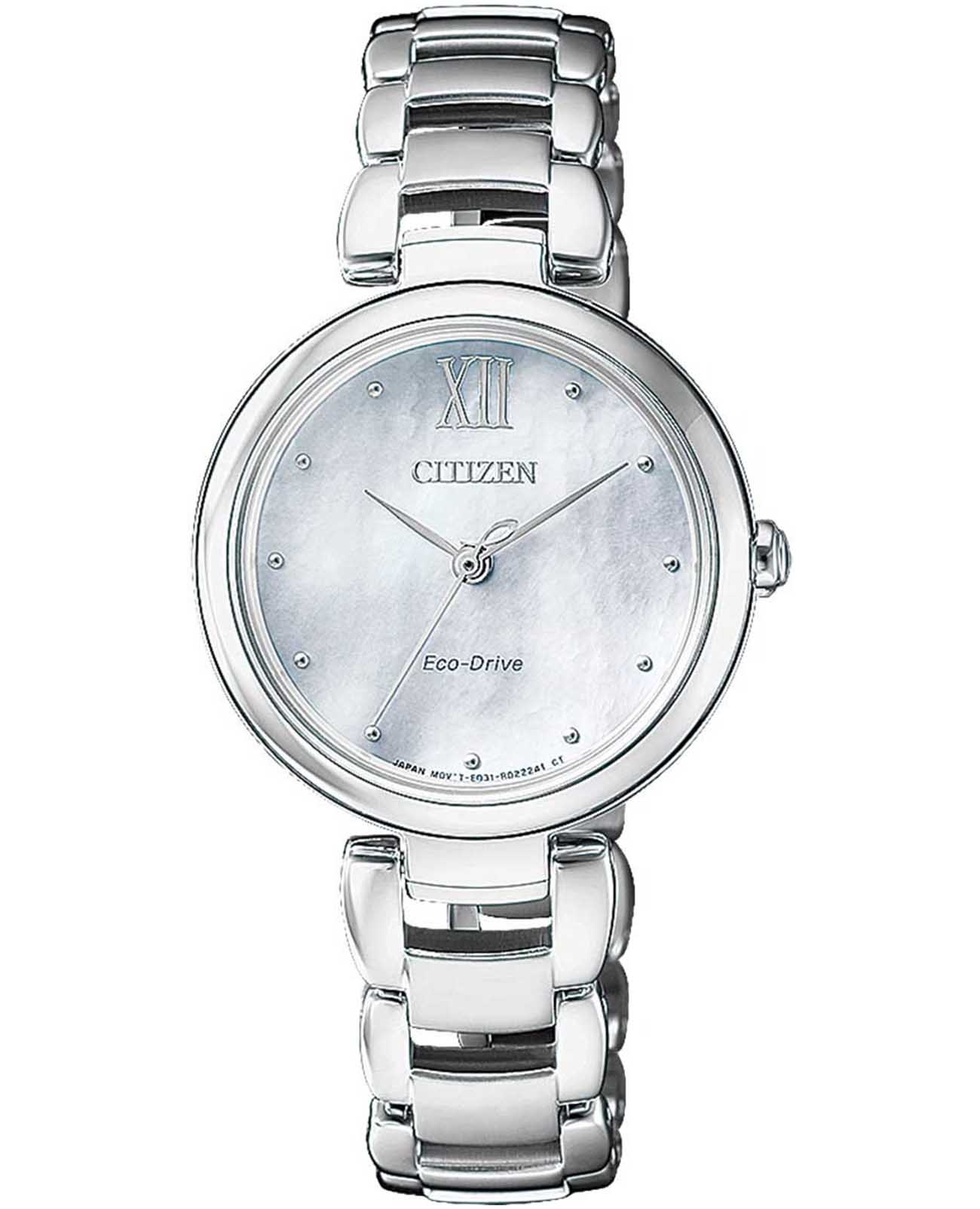Часы Citizen EM0530-81D — гармоничное сочетание строгого дизайна и современных технологий японского производства. Корпус и браслет выполнены из прочной нержавеющей стали, что обеспечивает надёжность и элегантный внешний вид. Перламутровый циферблат с часовыми метками в виде точек и римской цифрой 12 защищён устойчивым к царапинам сапфировым стекломСапфировое стеклоПрочный и надёжный материал из кристалла сапфира синтетического происхождения, характеризующийся особой твёрдостью и устойчивостью к царапинам и повреждениям., сохраняя безупречную прозрачность на протяжении долгого времени. Модель оснащена инновационной системой Eco-Drive, работающей на солнечной энергии и не требующей замены батарейки, с запасом хода до 180 дней. Практичные функции включают индикацию уровня заряда (EOLEOLПредставляет собой систему, уведомляющую владельца часов о необходимости замены элемента питания. За 2 недели до полного разряда батарейки секундная стрелка перестаёт ходить чётко и начинает перепрыгивать на 3-4 деления.) и защиту от перезарядки. Диаметр корпуса составляет 28,7 мм, толщина — 7,8 мм, вес — 63 г, что обеспечивает удобную посадку на запястье. Водозащита уровня 50WR позволяет не снимать часы при мытье рук или во время дождя. Браслет с застежкой «бабочка»Застёжка "бабочка"Такой вид застёжки дополняется предохранителями, помогающими избежать случайного раскрытия браслета. Обладают изящным исполнением. обеспечивает дополнительный комфорт и безопасность при носке. Эта модель станет надёжным аксессуаром, подчёркивающим индивидуальный стиль и уверенность в любой ситуации.