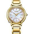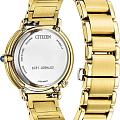 Часы Citizen EM1092-64D – это элегантная модель, созданная в Японии и сочетающая в себе современные технологии и изысканный дизайн. Надежный кварцевый механизм Citizen E031 с инновационной системой Eco-Drive работает от солнечной энергии и не требует замены батарейки, обеспечивая запас хода до 180 дней. Корпус и браслет часов выполнены из нержавеющей стали с золотым IP-покрытиемIP-покрытиеМетод ионного напыления. Демонстрирует повышенную устойчивость к истиранию, окислению и химическим веществам. Под воздействием высокого давления и температуры около 1500°C молекулы металла надёжно соединяются с частицами корпуса часов. и украшен тремя кристаллами, что придает аксессуару особое сияние. Перламутровый голубой циферблат с лаконичными метками защищен выпуклым сапфировым стекломСапфировое стеклоПрочный и надёжный материал из кристалла сапфира синтетического происхождения, характеризующийся особой твёрдостью и устойчивостью к царапинам и повреждениям., устойчивым к царапинам. Заводная головка декорирована камнем в форме кабошона, а задняя крышка закреплена на четырех винтах. Стальной браслет оснащен застежкой «бабочка»Застёжка "бабочка"Такой вид застёжки дополняется предохранителями, помогающими избежать случайного раскрытия браслета. Обладают изящным исполнением. и системой быстрой замены, что позволяет легко менять стиль часов в зависимости от вашего настроения. В комплекте также идет сменный белый ремешок с такой же застежкой. Водозащита 50WR позволяет не беспокоиться о случайном контакте с водой. Компактные размеры корпуса (диаметр 31,2 мм, толщина 7,8 мм, вес 71 г) обеспечивают комфортное ношение каждый день. Эти часы станут великолепным дополнением к любому образу и подчеркнут вашу индивидуальность.