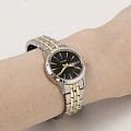 Часы Citizen EQ0608-55E выполнены в классическом стиле и станут отличным выбором для тех, кто ценит элегантность и надежность в каждом элементе. Модель оснащена точным японским кварцевым механизмом Citizen 1002, обеспечивающим стабильную работу и точный ход. Корпус диаметром 28 мм и толщиной 8 мм изготовлен из нержавеющей стали, что придаёт часам благородный оттенок и долговечность. Браслет, выполненный из стали с частичным золотистым IP-покрытиемIP-покрытиеМетод ионного напыления. Демонстрирует повышенную устойчивость к истиранию, окислению и химическим веществам. Под воздействием высокого давления и температуры около 1500°C молекулы металла надёжно соединяются с частицами корпуса часов. и оснащённый раскладной застёжкойРаскладная застёжкаТакой тип застёжки используется только на браслетах из металла. Она никогда не раскрывается полностью, происходит разделение на 2 и более частей. Раскладывающая застёжка снизит вероятность потери часов к минимуму. с системой блокировки, обеспечивает надежную фиксацию на запястье. Циферблат черного цвета украшен стрелками с люминесцентным покрытиемЛюминесцентное покрытиеПозволяет считывать показания времени в темноте. Производители наносят на стрелки, часовые индексы, безель или поверхность циферблата светонакопительный состав, дающий холодное свечение. для удобного считывания времени даже в условиях недостаточного освещения. Минеральное стеклоМинеральное стеклоМинеральное стекло представляет собой искусственно выращенный минерал кварца. Такое стекло отличается особой устойчивостью к повреждениям и царапинам. Уступает по некоторым качествам сапфировому стеклу. защищает часы от случайных царапин, а водозащита уровня 30WR позволяет не бояться случайных брызг или дождя. На циферблате также расположен календарь с отображением даты и дня недели, что делает модель ещё более функциональной. Заводная головка снабжена защитой, что повышает комфорт и безопасность использования.