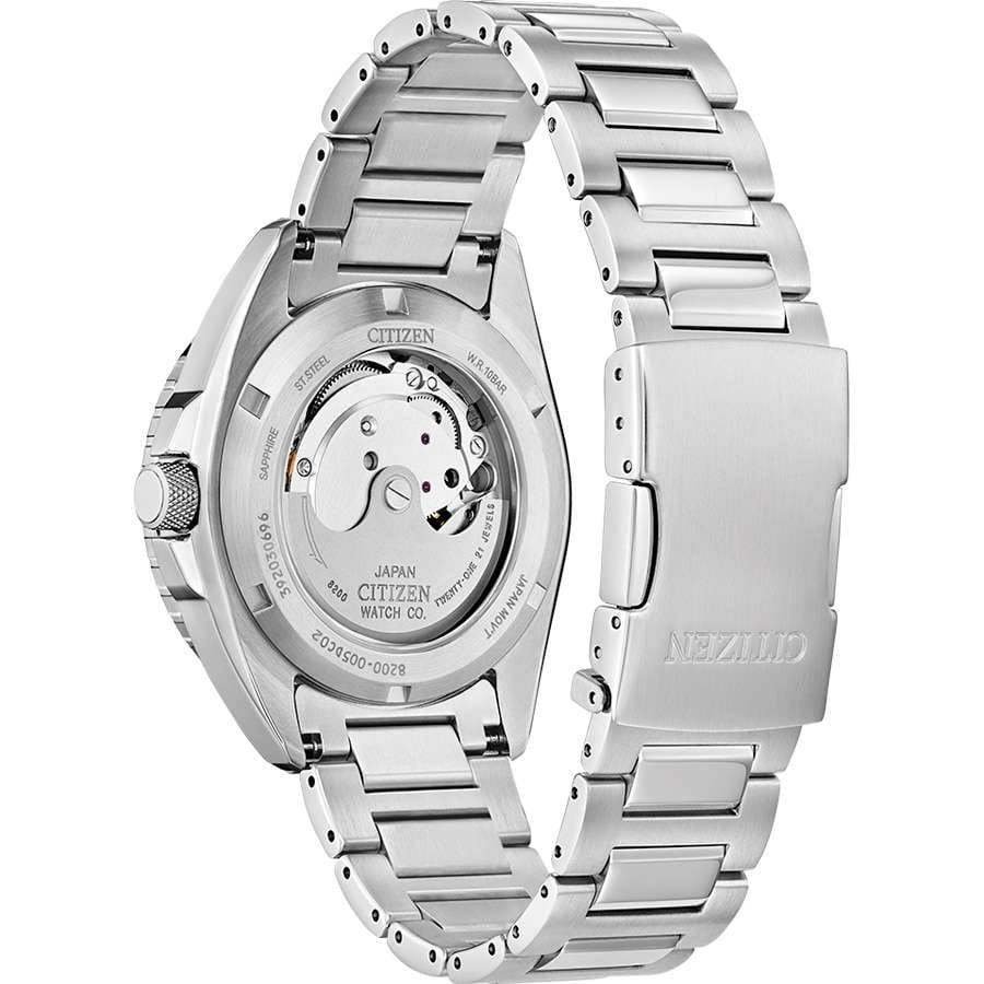 Мужские наручные часы Citizen Automatic NH7531-50E - сочетание спортивного стиля и повседневной функциональности. Корпус из нержавеющей стали диаметром 42 мм идеально сбалансирован. Сапфировое стеклоСапфировое стеклоПрочный и надёжный материал из кристалла сапфира синтетического происхождения, характеризующийся особой твёрдостью и устойчивостью к царапинам и повреждениям. обеспечивает отличную защиту циферблата от царапин. Механические часы с автоподзаводом. Стальной браслет на раскладной застёжкеРаскладная застёжкаТакой тип застёжки используется только на браслетах из металла. Она никогда не раскрывается полностью, происходит разделение на 2 и более частей. Раскладывающая застёжка снизит вероятность потери часов к минимуму. идеально дополняют дизайн часов, обеспечивая комфортное ношение. Окошко даты и дня недели в положении 3 часа. Стрелки и метки с люминесцентным покрытиемЛюминесцентное покрытиеПозволяет считывать показания времени в темноте. Производители наносят на стрелки, часовые индексы, безель или поверхность циферблата светонакопительный состав, дающий холодное свечение.. Однонаправленный вращающийся безельБезельВнешний ободок, закрепляющий стекло. В спортивных часах так называется поворотное кольцо с делениями на циферблате, выполняет роль таймера – замеряет отрезки времени на шкале. Неподвижный безель – элемент декора. Однонаправленно вращающийся безель на дайверских часах позволяет фиксировать моменты погружения и выныривания на поверхность. с IP-покрытиемIP-покрытиеМетод ионного напыления. Демонстрирует повышенную устойчивость к истиранию, окислению и химическим веществам. Под воздействием высокого давления и температуры около 1500°C молекулы металла надёжно соединяются с частицами корпуса часов.. Завинчивающаяся прозрачная задняя крышка. Циферблат с часовыми индексами в виде штрихов и точек. Часы обладают водонепроницаемостью до 100WR, что делает их идеальными для повседневной носки.