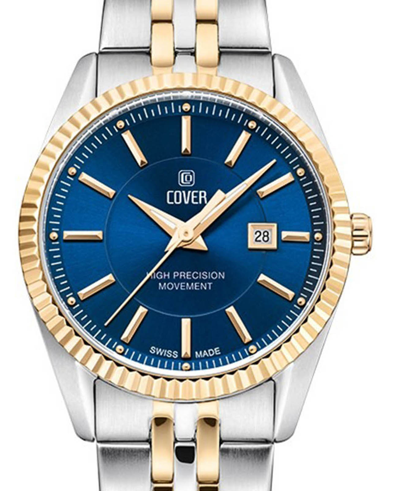 Часы COVER CO209.09 из коллекции Alston – элегантная модель швейцарского производства. Эти часы станут идеальным аксессуаром для элегантных дам, которые ценят стиль и качество. Браслет с раскладной застёжкойРаскладная застёжкаТакой тип застёжки используется только на браслетах из металла. Она никогда не раскрывается полностью, происходит разделение на 2 и более частей. Раскладывающая застёжка снизит вероятность потери часов к минимуму. и безельБезельВнешний ободок, закрепляющий стекло. В спортивных часах так называется поворотное кольцо с делениями на циферблате, выполняет роль таймера – замеряет отрезки времени на шкале. Неподвижный безель – элемент декора. Однонаправленно вращающийся безель на дайверских часах позволяет фиксировать моменты погружения и выныривания на поверхность. изготовлены из нержавеющей стали с PVDPVDУльтратонкое покрытие наносится в технике вакуумного напыления, сочетает в себе нитрид титана особой прочности со слоем золота или оксида хрома. Несёт в себе декоративную или защитную функцию. покрытием золотого цвета, корпус имеет диаметр 30 мм. На синем циферблате расположены накладные римские цифры. Надежное минеральное стеклоМинеральное стеклоМинеральное стекло представляет собой искусственно выращенный минерал кварца. Такое стекло отличается особой устойчивостью к повреждениям и царапинам. Уступает по некоторым качествам сапфировому стеклу. защищает часы от царапин и долго сохраняет первоначальный внешний вид. Они показывают день месяца, индикатор которых с накладной рамкой расположен в положении «3 часа». Водозащита 50 метров делает часы практичными для повседневного использования. На часовую, минутную стрелки нанесено люминесцентное покрытиеЛюминесцентное покрытиеПозволяет считывать показания времени в темноте. Производители наносят на стрелки, часовые индексы, безель или поверхность циферблата светонакопительный состав, дающий холодное свечение., которое светится в темноте, создавая необычное изображение. Эти часы идеально подойдут для светских раутов, бизнес-встреч и других важных событий, подчеркнут вашу элегантность и статус.