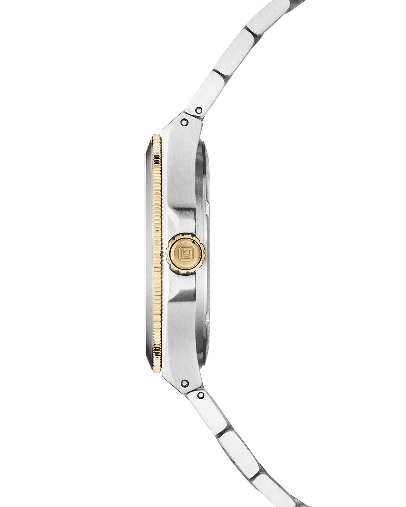 Часы Cover Iconosteel Lady CO223.04 воплощают в себе вечную элегантность благодаря своему чистому и утонченному дизайну. Эти швейцарские часы изготовлен из полированной нержавеющей стали, включая корпус и браслет. Они выделяются светящимся зеленым циферблатом выполненным по технике Sunray, обрамленным характерной формой Iconosteel с круглым корпусом и рифлёным безелемБезельВнешний ободок, закрепляющий стекло. В спортивных часах так называется поворотное кольцо с делениями на циферблате, выполняет роль таймера – замеряет отрезки времени на шкале. Неподвижный безель – элемент декора. Однонаправленно вращающийся безель на дайверских часах позволяет фиксировать моменты погружения и выныривания на поверхность. с частичным золотистым PVD-покрытиемPVDУльтратонкое покрытие наносится в технике вакуумного напыления, сочетает в себе нитрид титана особой прочности со слоем золота или оксида хрома. Несёт в себе декоративную или защитную функцию.. Часовые метки из кристаллов придают циферблату едва заметное сияние, а светящиеся стрелки благодаря люминесцентному покрытиюЛюминесцентное покрытиеПозволяет считывать показания времени в темноте. Производители наносят на стрелки, часовые индексы, безель или поверхность циферблата светонакопительный состав, дающий холодное свечение. обеспечивают отличную читаемость и практичность. Эти швейцарские женские часы, идеально подходящие как для делового стиля, так и для повседневного образа, воплощают в себе универсальность и утонченность. Оснащенные устойчивым к царапинам сапфировым стекломСапфировое стеклоПрочный и надёжный материал из кристалла сапфира синтетического происхождения, характеризующийся особой твёрдостью и устойчивостью к царапинам и повреждениям., швейцарским кварцевым механизмом и функцией отображения даты, эти часы соединяют надежность и элегантность. Завершает образ стальной браслет с раскладной застёжкойРаскладная застёжкаТакой тип застёжки используется только на браслетах из металла. Она никогда не раскрывается полностью, происходит разделение на 2 и более частей. Раскладывающая застёжка снизит вероятность потери часов к минимуму., который удобно сидит на запястье и обеспечивает надежную фиксацию. Часы обладают водозащитой уровня 100WR, что делает их подходящими для повседневного использования и активного образа жизни.
