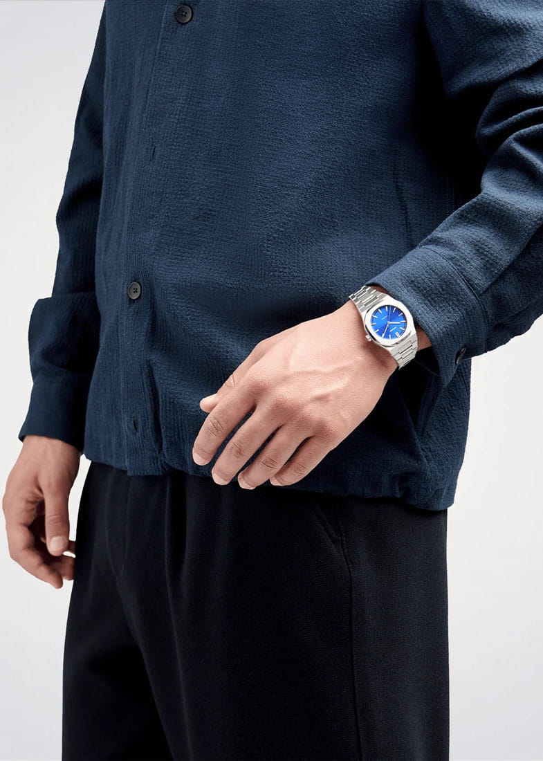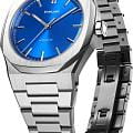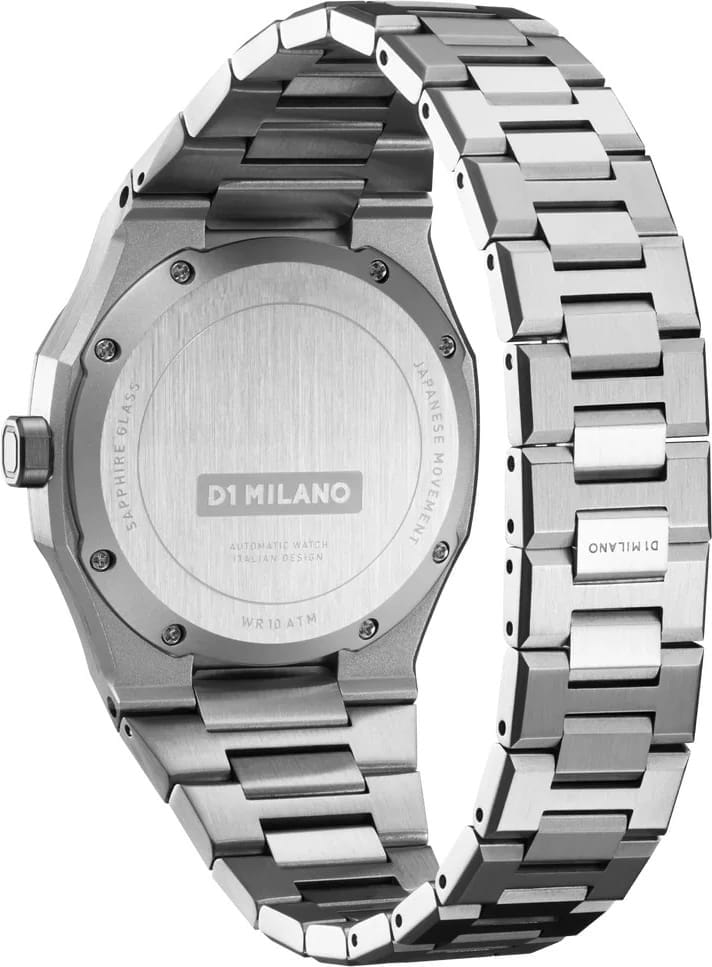 Часы D1 Milano Automatico Navy Code ATBU06 – стильный аксессуар для современных женщин. Часы механические с автоподзаводом. Корпус выполнен из прочной нержавеющей стали 316L, а изысканный синий циферблат украшен простыми штрихами вместо цифр. Минималистичный дизайн циферблата, защищенный прочным сапфировым стекломСапфировое стеклоПрочный и надёжный материал из кристалла сапфира синтетического происхождения, характеризующийся особой твёрдостью и устойчивостью к царапинам и повреждениям. с антибликовым покрытиемАнтибликовое покрытиеСлой оксида металла в 0,13-0,3 микрон, благодаря которому стекло часов не бликует и не отражает свет. Антибликовое покрытие уменьшает отражение света в 10 раз, обеспечивая отличную читаемость показателей циферблата., привлекает внимание своей сдержанной красотой. Лаконичные стрелки с люминесцентным покрытиемЛюминесцентное покрытиеПозволяет считывать показания времени в темноте. Производители наносят на стрелки, часовые индексы, безель или поверхность циферблата светонакопительный состав, дающий холодное свечение.. Задняя крышка закреплена на 8 винтах, что обеспечивает надежность конструкции. Стальной браслет с удобной застёжкой «бабочка»Застёжка "бабочка"Такой вид застёжки дополняется предохранителями, помогающими избежать случайного раскрытия браслета. Обладают изящным исполнением. обеспечивают комфорт при ношении. Часы имеют водозащиту 100 метров (100WR), что позволит плавать, нырять и заниматься другими водными видами спорта. Это не просто часы, а статусный аксессуар, подчеркивающий безупречный вкус и внимание к деталям своего владельца.