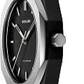 Часы D1 Milano Polycarbon PCBJ14 – молодежные часы в стиле унисекс для повседневных образов. Модель Moonglade имеет черный корпус из поликарбоната с покрытием Софт-Тач. Стальной неподвижный безельБезельВнешний ободок, закрепляющий стекло. В спортивных часах так называется поворотное кольцо с делениями на циферблате, выполняет роль таймера – замеряет отрезки времени на шкале. Неподвижный безель – элемент декора. Однонаправленно вращающийся безель на дайверских часах позволяет фиксировать моменты погружения и выныривания на поверхность.. Циферблат лаконичный с индексами в виде серебристых штрихов, защищен минеральным стекломМинеральное стеклоМинеральное стекло представляет собой искусственно выращенный минерал кварца. Такое стекло отличается особой устойчивостью к повреждениям и царапинам. Уступает по некоторым качествам сапфировому стеклу. с антибликовым покрытием. Стрелки с люминесцентным покрытиемЛюминесцентное покрытиеПозволяет считывать показания времени в темноте. Производители наносят на стрелки, часовые индексы, безель или поверхность циферблата светонакопительный состав, дающий холодное свечение., светятся в темноте. Стальная задняя крышка на 4 винтах. Пластиковый браслет с раскладной застёжкойРаскладная застёжкаТакой тип застёжки используется только на браслетах из металла. Она никогда не раскрывается полностью, происходит разделение на 2 и более частей. Раскладывающая застёжка снизит вероятность потери часов к минимуму..