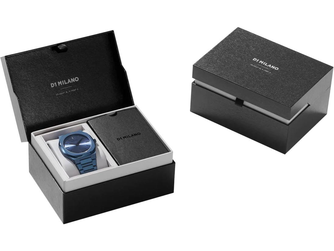 Часы D1 Milano UTBJ21 — это уникальные кварцевые часы, которые подчеркнут ваш изысканный стиль. Эти наручные часы из коллекции Ultra Thin с эффектным монохромным дизайном станут выразительным акцентом вашего образа. Корпус диаметром 40 мм из нержавеющей стали с PVDPVDУльтратонкое покрытие наносится в технике вакуумного напыления, сочетает в себе нитрид титана особой прочности со слоем золота или оксида хрома. Несёт в себе декоративную или защитную функцию. покрытием придает часам современный и утонченный вид. Синий циферблат с метками в виде штрихов и такие же синие хроматические стрелки и индексы подчеркивают элегантность модели. Задняя крышка из нержавеющей стали закреплена на 8-х винтах и дополнена индивидуальным серийным номером, что подчеркивает уникальность каждого экземпляра. Стальной браслет с PVDPVDУльтратонкое покрытие наносится в технике вакуумного напыления, сочетает в себе нитрид титана особой прочности со слоем золота или оксида хрома. Несёт в себе декоративную или защитную функцию. покрытием и раскладной застёжкойРаскладная застёжкаТакой тип застёжки используется только на браслетах из металла. Она никогда не раскрывается полностью, происходит разделение на 2 и более частей. Раскладывающая застёжка снизит вероятность потери часов к минимуму. обеспечивает надежность и комфорт в повседневном использовании. Сапфировое стеклоСапфировое стеклоПрочный и надёжный материал из кристалла сапфира синтетического происхождения, характеризующийся особой твёрдостью и устойчивостью к царапинам и повреждениям. с антибликовым покрытием защищает циферблат, а водозащита до 50WR делает эти часы практичным выбором для любых условий. Благодаря калибру Miyota 1L22, они отличаются точностью и надежностью. Эти итальянские часы представляют собой идеальное сочетание традиционного мастерства и инновационного подхода, воплощая в себе новый взгляд на классическую элегантность.
