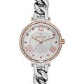 Женские кварцевые часы Daniel Klein — это стильный и оригинальный аксессуар. Корпус диаметром 33 мм выполнен из нержавеющей стали. БезельБезельВнешний ободок, закрепляющий стекло. В спортивных часах так называется поворотное кольцо с делениями на циферблате, выполняет роль таймера – замеряет отрезки времени на шкале. Неподвижный безель – элемент декора. Однонаправленно вращающийся безель на дайверских часах позволяет фиксировать моменты погружения и выныривания на поверхность. с IP-покрытиемIP-покрытиеМетод ионного напыления. Демонстрирует повышенную устойчивость к истиранию, окислению и химическим веществам. Под воздействием высокого давления и температуры около 1500°C молекулы металла надёжно соединяются с частицами корпуса часов. декорирован узором. Циферблат серебристого цвета имеет центральную часть с декоративным узором в виде расходящихся лучей, индексы представлены точками и римскими цифрами в положениях 4, 8 и 12 часов. Стрелки мечевидные, в стиле Sword. Циферблат защищён минеральным стекломМинеральное стеклоМинеральное стекло представляет собой искусственно выращенный минерал кварца. Такое стекло отличается особой устойчивостью к повреждениям и царапинам. Уступает по некоторым качествам сапфировому стеклу.. Механизм — японское кварцевое движение калибра Miyota 2035. Часы оснащены стальным браслетом в виде массивной цепочки на ювелирной застёжкеРаскладной замокДанный вариант застежки используется только на часах с металлическим браслетом. Отличительная особенность такого крепления в том, что длина браслета становится универсальной и вы можете самостоятельно отрегулировать нужный вам размер – застежка просто двигается по браслету часов.. Водонепроницаемость 30 м позволяет использовать часы в повседневных условиях. Идеальный выбор для тех, кто ценит турецкое качество и элегантный дизайн.