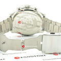 Несмотря на креативные формы, часы выполнены в классической чёрно-серебристой цветовой гамме, ярким акцентом стала красная секундная стрелка. Благодаря такому исполнению наручные часы одинаково хорошо сочетаются как со строгими костюмами, так и с повседневной одеждой. Модель сделана из нержавеющей стали 316L, материал отличается устойчивостью к повреждениям и на долгие годы сохраняет идеальный внешний вид. Люминесцентная подсветкаЛюминесцентное покрытиеПозволяет считывать показания времени в темноте. Производители наносят на стрелки, часовые индексы, безель или поверхность циферблата светонакопительный состав, дающий холодное свечение. стрелок. Минеральное стекло отличается устойчивостью к появлению царапин. Заводная головка с защитой. Водостойкость до 100 метров. ХронографХронографФункция позволяет измерять отрезки времени с особой точностью: часы, минуты, секунды. Верным признаком хронографа является наличие на циферблате 3 дополнительных окошек-счётчиков., секундомер, индикация даты. Габариты: 55 x 51 x 14 мм.