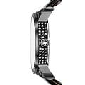 Корпус часов выполнен из стали с высокими антикоррозийными свойствами с PVD покрытием. Ремешок из натуральной кожи черного цвета. Водозащита до 3 АТМ. Степень водонепроницаемости не является величиной, эквивалентной функциональной рабочей глубине. Циферблат и корпус украшен кристаллами swarovski. Часы показывают время двух часовых поясов.