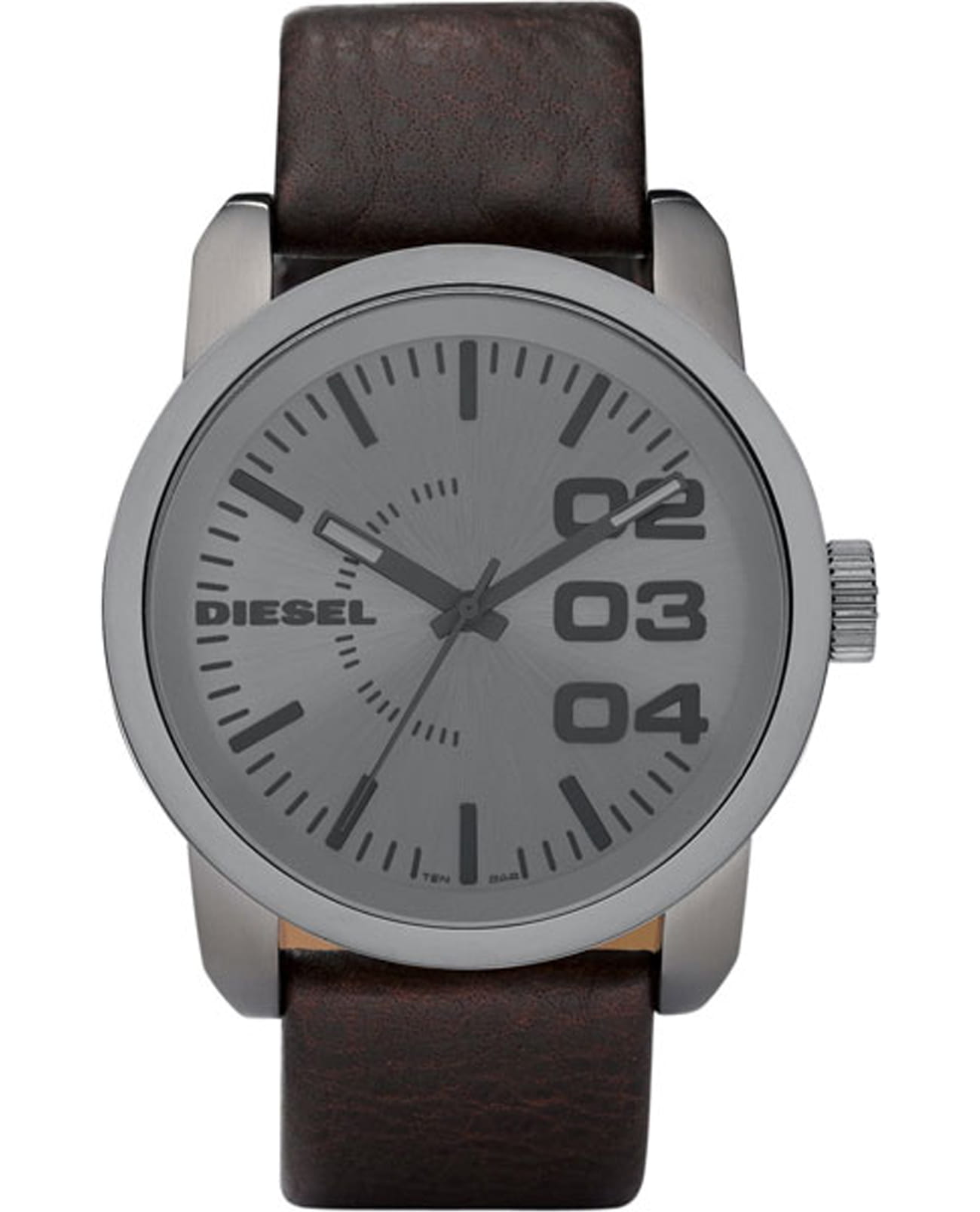 Нашли дешевле?Стильные мужские наручные часы Diesel DZ1467 Кожаный ремешок Классический материал для ремешка. Ремешки из кожи гибкие и приятные на ощупь. Обладают гиполаллергенными свойствами. Корпус из нержавеющей стали Корпус из стали считается надежным и долговечным. Часы на батарейке Элементом питания в таких часах является батарейка, которая приводит в действие кварцевый механизм. Срок службы батарейки обычно несколько лет, после чего ее придется поменять. Водонепроницаемость - 100 м Водозащита часов позволяет купаться и принимать душ, не снимая их с руки. Глубоко нырять в этих часах не рекомендуется. Минеральное часовое стекло Минеральное стекло - самый распространенный материал для часов. Это тот же материал, который используется для окон, но в случае с часами, стекло еще дополнительно закаливают, чтобы оно стало прочнее. Тем не менее его все равно легче поцарапать, чем сапфировое стекло. Из плюсов - не колкое как сапфировое стекло. При прямом ударе по стеклу только разбивается, сапфировое стекло раскалывается пополам. Кварцевые часы Кварцевые часы используют энергию батареи. Считаются более точными и удобными. Подсветка стрелок У этой модели часов на стрелки нанесен накапливающий свет флуоресцирующий материал, за счет которого обеспечивается свечение стрелок в темноте.