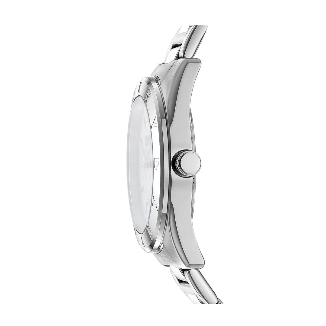 Женские наручные часы DKNY DK1L015M0025 – модель сочетает в себе элегантный дизайн и спортивный дух, что делает ее идеальным аксессуаром для современных активных женщин. Корпус из нержавеющей стали диаметром 36 мм и минеральное стеклоМинеральное стеклоМинеральное стекло представляет собой искусственно выращенный минерал кварца. Такое стекло отличается особой устойчивостью к повреждениям и царапинам. Уступает по некоторым качествам сапфировому стеклу. обеспечивает защиту от царапин, а водонепроницаемость до 50 метров делает модель практичной для активного отдыха или повседневной носки. Браслет из нержавеющей стали с раскладной застёжкойРаскладная застёжкаТакой тип застёжки используется только на браслетах из металла. Она никогда не раскрывается полностью, происходит разделение на 2 и более частей. Раскладывающая застёжка снизит вероятность потери часов к минимуму. надежно фиксирует часы на руке. DKNY Chambers Multi Sport – идеально подойдут для девушек, ценящих утонченность и функциональность в аксессуарах, станут прекрасным дополнением к любому образу, от повседневного до вечернего.