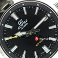 Модель выполнена в минималистичном дизайне, дополненным спортивными элементами. Чёрный циферблат имеет крупные часовые индексы и стрелки, для удобства считывания показателей секундная стрелка имеет яркий наконечник. Часы сделаны из хирургической стали 316L, материал устойчив к царапинам и коррозии. Кварцевый механизм японского производства с точностью хода +/- 20 секунд в месяц. Срок службы батарейки - 3 года. Яркая подсветка NeobriteПодсветка NeobriteИспользование светонакопительных составов на основе сульфида цинка или алюмината стронция, яркий свет можно наблюдать на протяжении 6-10 часов после «зарядки» часов около источника света.. Сохранение водонепроницаемости до 10 бар. Закручивающаяся задняя крышка. Заводная головка с системой защиты. Индикация текущего числа. Габариты: 37,8 x 42 x 9,4 мм.