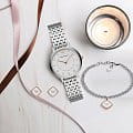 Кварцевые часы работают от батарейки или аккумулятора. Внутри механизма установлен кристалл кварца: под воздействием электричества он колеблется с очень стабильной частотой, а электроника превращает эти колебания в секунды и управляет стрелками. Такие часы ценят за точность и простоту. Средняя погрешность — около ±15 секунд в месяц, поэтому время долго остаётся практически идеальным.