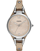 Нашли дешевле?Стильные кварцевые женские наручные часы в полированном стальном корпусе на ремешке из натуральной кожи светло-коричневого цвета.