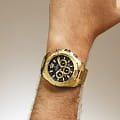 Эксклюзивный хронографХронографФункция позволяет измерять отрезки времени с особой точностью: часы, минуты, секунды. Верным признаком хронографа является наличие на циферблате 3 дополнительных окошек-счётчиков. с секундомеромСекундомерСекундоме́р — прибор, способный измерять интервалы времени с точностью до долей секунды., отличающийся продуманным дизайном и отделкой, придется по вкусу мужчинам, ценящим идеальное соотношение цены и качества. Минеральное стеклоМинеральное стеклоМинеральное стекло представляет собой искусственно выращенный минерал кварца. Такое стекло отличается особой устойчивостью к повреждениям и царапинам. Уступает по некоторым качествам сапфировому стеклу. устойчивое к появлению царапин, обладающее высокой прозрачностью. Циферблат с люминесцентным покрытиемЛюминесцентное покрытиеПозволяет считывать показания времени в темноте. Производители наносят на стрелки, часовые индексы, безель или поверхность циферблата светонакопительный состав, дающий холодное свечение. стрелок и меток. Корпус и браслет с PVDPVDУльтратонкое покрытие наносится в технике вакуумного напыления, сочетает в себе нитрид титана особой прочности со слоем золота или оксида хрома. Несёт в себе декоративную или защитную функцию. покрытием. Класс водозащиты: 100 метров, позволит защитить корпус от случайных брызг или капель дождя.