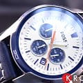 Мужские наручные часы, оснащённые хронографом с тахометрической шкалой, выполненные в спортивном стиле на широком кожаном ремешке.