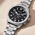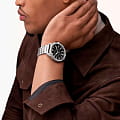 Часы Fossil BQ2797, кварцевый механизм с высокой точностью. Минеральное стеклоМинеральное стеклоМинеральное стекло представляет собой искусственно выращенный минерал кварца. Такое стекло отличается особой устойчивостью к повреждениям и царапинам. Уступает по некоторым качествам сапфировому стеклу. устойчивое к мелким механическим повреждениям. Класс водозащиты: 50 метров, позволит защитить корпус от случайных брызг или капель дождя. Корпус часов изготовлен из стали. Стрелки и метки с люминесцентным покрытиемЛюминесцентное покрытиеПозволяет считывать показания времени в темноте. Производители наносят на стрелки, часовые индексы, безель или поверхность циферблата светонакопительный состав, дающий холодное свечение.. Функции даты, дня недели и 24 часового формата времени вынесены на отдельные циферблаты. Стальной браслет на раскладной застёжкеРаскладная застёжкаТакой тип застёжки используется только на браслетах из металла. Она никогда не раскрывается полностью, происходит разделение на 2 и более частей. Раскладывающая застёжка снизит вероятность потери часов к минимуму..