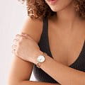 Женские американские часы с минеральным стекломМинеральное стеклоМинеральное стекло представляет собой искусственно выращенный минерал кварца. Такое стекло отличается особой устойчивостью к повреждениям и царапинам. Уступает по некоторым качествам сапфировому стеклу. Fossil Carlie ES5273, кварцевый механизм с высокой точностью. Корпус и браслет часов изготовлены из нержавеющей стали с IP-покрытиемIP-покрытиеМетод ионного напыления. Демонстрирует повышенную устойчивость к истиранию, окислению и химическим веществам. Под воздействием высокого давления и температуры около 1500°C молекулы металла надёжно соединяются с частицами корпуса часов.. Стрелки с люминесцентным покрытиемЛюминесцентное покрытиеПозволяет считывать показания времени в темноте. Производители наносят на стрелки, часовые индексы, безель или поверхность циферблата светонакопительный состав, дающий холодное свечение.. Рифленая заводная головка с защитой. Класс водозащиты: 50 метров, позволит защитить корпус от случайных брызг или капель дождя. Стальной браслет в виде звеньев на ювелирной застежке.