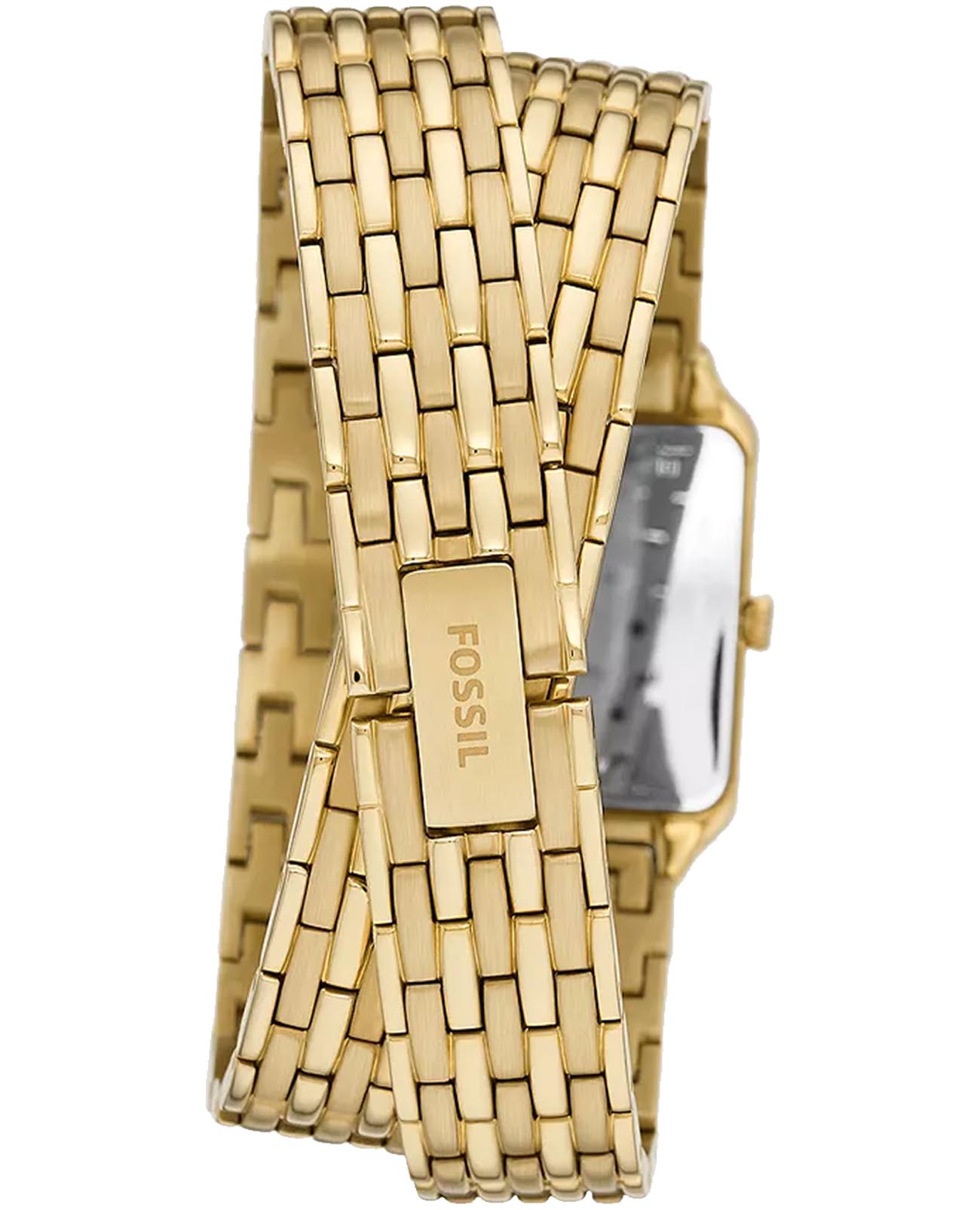 Женские американские часы с минеральным стекломМинеральное стеклоМинеральное стекло представляет собой искусственно выращенный минерал кварца. Такое стекло отличается особой устойчивостью к повреждениям и царапинам. Уступает по некоторым качествам сапфировому стеклу. Fossil Raquel ES5302, кварцевый механизм с высокой точностью. Корпус и браслет часов изготовлены из нержавеющей стали с IP-покрытиемIP-покрытиеМетод ионного напыления. Демонстрирует повышенную устойчивость к истиранию, окислению и химическим веществам. Под воздействием высокого давления и температуры около 1500°C молекулы металла надёжно соединяются с частицами корпуса часов.. Класс водозащиты: 50 метров, позволит защитить корпус от случайных брызг или капель дождя. Удлиненный стальной браслет на застёжке-бабочке. Окошко даты находится в положении 6 часов.