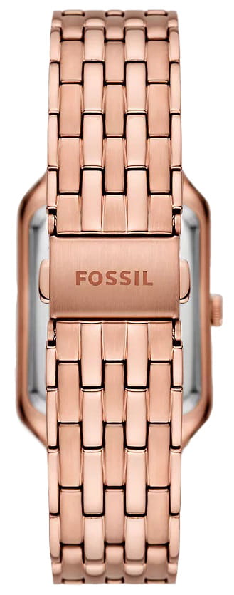 Женские американские часы с минеральным стекломМинеральное стеклоМинеральное стекло представляет собой искусственно выращенный минерал кварца. Такое стекло отличается особой устойчивостью к повреждениям и царапинам. Уступает по некоторым качествам сапфировому стеклу. Fossil Raquel ES5323, кварцевый механизм с высокой точностью. Корпус и браслет часов изготовлены из нержавеющей стали с IP-покрытиемIP-покрытиеМетод ионного напыления. Демонстрирует повышенную устойчивость к истиранию, окислению и химическим веществам. Под воздействием высокого давления и температуры около 1500°C молекулы металла надёжно соединяются с частицами корпуса часов.. Класс водозащиты: 50 метров, позволит защитить корпус от случайных брызг или капель дождя. Стальной браслет на раскладной застёжкеРаскладная застёжкаТакой тип застёжки используется только на браслетах из металла. Она никогда не раскрывается полностью, происходит разделение на 2 и более частей. Раскладывающая застёжка снизит вероятность потери часов к минимуму.. Окошко даты находится в положении 6 часов. Циферблат украшен кристаллами.