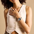 Женские американские часы с минеральным стекломМинеральное стеклоМинеральное стекло представляет собой искусственно выращенный минерал кварца. Такое стекло отличается особой устойчивостью к повреждениям и царапинам. Уступает по некоторым качествам сапфировому стеклу. Fossil Raquel ES5348, кварцевый механизм с высокой точностью. Корпус часов изготовлены из нержавеющей стали . Класс водозащиты: 50 метров, позволит защитить корпус от случайных брызг или капель дождя. Стальной браслет с IP-покрытиемIP-покрытиеМетод ионного напыления. Демонстрирует повышенную устойчивость к истиранию, окислению и химическим веществам. Под воздействием высокого давления и температуры около 1500°C молекулы металла надёжно соединяются с частицами корпуса часов. на раскладной застёжкеРаскладная застёжкаТакой тип застёжки используется только на браслетах из металла. Она никогда не раскрывается полностью, происходит разделение на 2 и более частей. Раскладывающая застёжка снизит вероятность потери часов к минимуму.. БезельБезельВнешний ободок, закрепляющий стекло. В спортивных часах так называется поворотное кольцо с делениями на циферблате, выполняет роль таймера – замеряет отрезки времени на шкале. Неподвижный безель – элемент декора. Однонаправленно вращающийся безель на дайверских часах позволяет фиксировать моменты погружения и выныривания на поверхность. с IP-покрытиемIP-покрытиеМетод ионного напыления. Демонстрирует повышенную устойчивость к истиранию, окислению и химическим веществам. Под воздействием высокого давления и температуры около 1500°C молекулы металла надёжно соединяются с частицами корпуса часов.. Стрелки с люминесцентным покрытиемЛюминесцентное покрытиеПозволяет считывать показания времени в темноте. Производители наносят на стрелки, часовые индексы, безель или поверхность циферблата светонакопительный состав, дающий холодное свечение.. Циферблат украшен кристаллами.