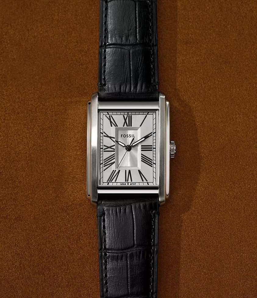 Часы Fossil FS6078 идеально подойдут для тех, кто ценит классический стиль, дополненный современными деталями, и ищет аксессуар, способный подчеркнуть их индивидуальность и элегантность. Эти мужские наручные часы производятся в США и оснащены надежным кварцевым механизмом, который обеспечивает точность и стабильность в работе. Прямоугольный корпус из стали гарантирует долговечность и придает часам стильный и современный вид. Серебристый циферблат, выполненный по технологии Sunray, создает эффект солнечных лучей, что добавляет глубину и изысканность дизайну. Метки в виде римских цифр придают циферблату классический акцент, а рифленая заводная головка облегчает настройку времени. Стрелки с люминесцентным покрытиемЛюминесцентное покрытиеПозволяет считывать показания времени в темноте. Производители наносят на стрелки, часовые индексы, безель или поверхность циферблата светонакопительный состав, дающий холодное свечение. позволяют легко считывать время даже в условиях низкой освещенности. Часы оснащены удобным кожаным черным ремешком с классической застежкой, который обеспечивает комфортное ношение и надежную фиксацию на запястье. Ширина ремешка составляет 22 мм, а длина — 200 мм, что делает их подходящими для большинства запястий. Водозащита уровня 50WR защищает механизм от случайных брызг, а минеральное стеклоМинеральное стеклоМинеральное стекло представляет собой искусственно выращенный минерал кварца. Такое стекло отличается особой устойчивостью к повреждениям и царапинам. Уступает по некоторым качествам сапфировому стеклу. оберегает циферблат от царапин и повреждений.