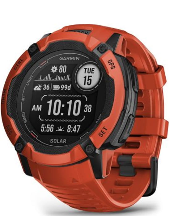 Умные многофункциональные мужские часы Garmin Instinct 2X Solar 010-02805-01, электронный механизм с высокой точностью. Класс водозащиты: 100 метров, позволит плавать, нырять и заниматься другими водными видами спорта. Материал корпуса: Фиброармированный полимер Ударопрочный корпусУдаропрочный корпусМеханизм заключён в корпус, выполненный из современных материалов, устойчивых к ударам, механическим повреждениям и падению с высоты: инновационный пластик, карбон, нержавеющая сталь, титан.. Минеральное стеклоМинеральное стеклоМинеральное стекло представляет собой искусственно выращенный минерал кварца. Такое стекло отличается особой устойчивостью к повреждениям и царапинам. Уступает по некоторым качествам сапфировому стеклу. которое было химически усиленно. Экран с светодиодной подсветкойСветодиодная подсветкаСветодиодная или LED-подсветка обеспечивает появление яркого холодного свечения за счёт LED-элементов - маленьких лампочек. Они потребляют минимальное количество энергии, чаще всего можно встретить 1 светодиод, в нижней части циферблата..