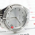 Стальной корпус круглой формы. Отсчет данных ведут три элегантные стрелки. Прочный браслет с раскладывающейся застёжкойРаскладная застёжкаТакой тип застёжки используется только на браслетах из металла. Она никогда не раскрывается полностью, происходит разделение на 2 и более частей. Раскладывающая застёжка снизит вероятность потери часов к минимуму. будет надежно сидеть на запястье. Элегантный безельБезельВнешний ободок, закрепляющий стекло. В спортивных часах так называется поворотное кольцо с делениями на циферблате, выполняет роль таймера – замеряет отрезки времени на шкале. Неподвижный безель – элемент декора. Однонаправленно вращающийся безель на дайверских часах позволяет фиксировать моменты погружения и выныривания на поверхность. с ослепительными кристаллами Swarovski. Вставлено минеральное стекло с закалкой. Кварцевый механизм. Водонепроницаемость составляют 30 WR.