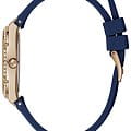 Роскошный безельБезельВнешний ободок, закрепляющий стекло. В спортивных часах так называется поворотное кольцо с делениями на циферблате, выполняет роль таймера – замеряет отрезки времени на шкале. Неподвижный безель – элемент декора. Однонаправленно вращающийся безель на дайверских часах позволяет фиксировать моменты погружения и выныривания на поверхность. декорирован оригинальными кристаллами Swarovski. Кварцевый механизм защищает стальной корпус с IP-покрытиемIP-покрытиеМетод ионного напыления. Демонстрирует повышенную устойчивость к истиранию, окислению и химическим веществам. Под воздействием высокого давления и температуры около 1500°C молекулы металла надёжно соединяются с частицами корпуса часов.. Силиконовый синий ремешок комфортно фиксируется на запястье. Минеральное стекло устойчиво к царапинам и повреждениям. Сохраняется водостойкость при давлении до 3 бар.