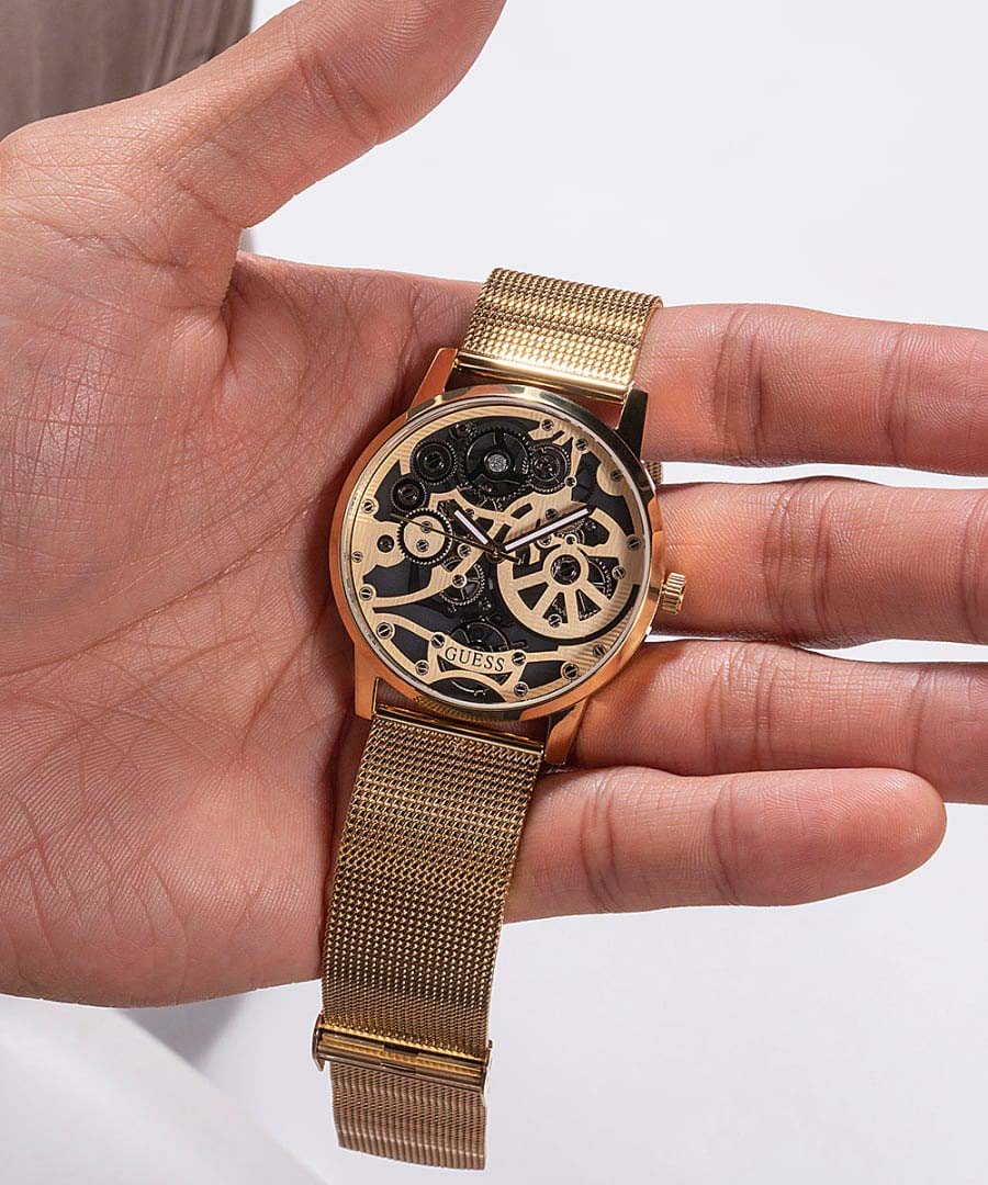 Мужские наручные часы с минеральным стекломМинеральное стеклоМинеральное стекло представляет собой искусственно выращенный минерал кварца. Такое стекло отличается особой устойчивостью к повреждениям и царапинам. Уступает по некоторым качествам сапфировому стеклу. Guess Gadget GW0538G2, кварцевый механизм с высокой точностью. Класс водозащиты: 50 метров, позволит защитить корпус от случайных брызг или капель дождя. Корпус часов изготовлен из стали с IP-покрытиемIP-покрытиеМетод ионного напыления. Демонстрирует повышенную устойчивость к истиранию, окислению и химическим веществам. Под воздействием высокого давления и температуры около 1500°C молекулы металла надёжно соединяются с частицами корпуса часов.. Стальной браслет на раскладной застёжкеРаскладная застёжкаТакой тип застёжки используется только на браслетах из металла. Она никогда не раскрывается полностью, происходит разделение на 2 и более частей. Раскладывающая застёжка снизит вероятность потери часов к минимуму. с IP-покрытиемIP-покрытиеМетод ионного напыления. Демонстрирует повышенную устойчивость к истиранию, окислению и химическим веществам. Под воздействием высокого давления и температуры около 1500°C молекулы металла надёжно соединяются с частицами корпуса часов..