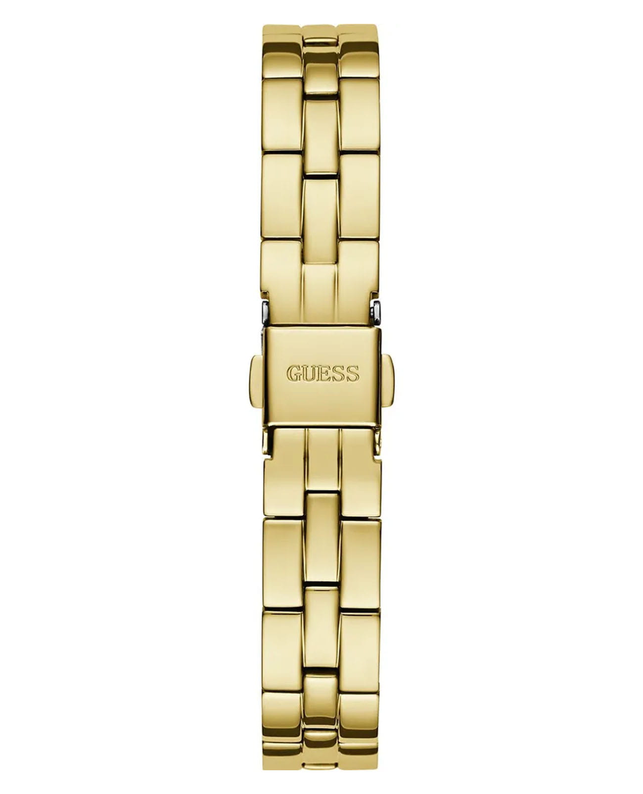 Женские наручные часы Guess Dress GW0762L2 с минеральным стекломМинеральное стеклоМинеральное стекло представляет собой искусственно выращенный минерал кварца. Такое стекло отличается особой устойчивостью к повреждениям и царапинам. Уступает по некоторым качествам сапфировому стеклу., кварцевый механизм с высокой точностью. Корпус часов изготовлен из стали с IP-покрытиемIP-покрытиеМетод ионного напыления. Демонстрирует повышенную устойчивость к истиранию, окислению и химическим веществам. Под воздействием высокого давления и температуры около 1500°C молекулы металла надёжно соединяются с частицами корпуса часов.. Корпус и циферблат украшены кристаллами. Класс водозащиты: 30 метров, позволит защитить корпус от случайных брызг или капель дождя. Стальной браслет с IP-покрытиемIP-покрытиеМетод ионного напыления. Демонстрирует повышенную устойчивость к истиранию, окислению и химическим веществам. Под воздействием высокого давления и температуры около 1500°C молекулы металла надёжно соединяются с частицами корпуса часов. на раскладной застёжкеРаскладная застёжкаТакой тип застёжки используется только на браслетах из металла. Она никогда не раскрывается полностью, происходит разделение на 2 и более частей. Раскладывающая застёжка снизит вероятность потери часов к минимуму.