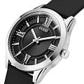 Стильные и практичные мужские наручные часы Guess GW0894G1 станут достойным дополнением к вашему образу. Эти часы оснащены надежным кварцевым механизмом, гарантирующим точность и долговечность. Круглый стальной корпус с полированной поверхностью подчеркивает элегантность и современный стиль аксессуара. Черный циферблат, выполненный по технологии Sunray, создает эффект солнечных лучей, добавляя глубины и изысканности. Метки в виде штрихов и римских цифр позволяют легко считывать время, а рифленая заводная головка обеспечивает удобство в использовании. Силиконовый черный ремешок с классической застежкой обеспечивает комфортное прилегание к запястью и надежную фиксацию. Минеральное стеклоМинеральное стеклоМинеральное стекло представляет собой искусственно выращенный минерал кварца. Такое стекло отличается особой устойчивостью к повреждениям и царапинам. Уступает по некоторым качествам сапфировому стеклу. защищает циферблат от царапин, сохраняя его безупречный вид. Люминесцентное покрытиеЛюминесцентное покрытиеПозволяет считывать показания времени в темноте. Производители наносят на стрелки, часовые индексы, безель или поверхность циферблата светонакопительный состав, дающий холодное свечение. на стрелках обеспечивает отличную видимость в темноте. Водозащита уровня 50WR позволяет не беспокоиться о случайных брызгах и дождевых каплях, что делает эти часы идеальным выбором для активных и стильных мужчин.