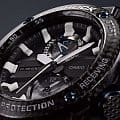 Внушительный аксессуар стильно смотрится на широком запястье, гармонично смотрятся крупные детали в голубом цвете. Задняя крышка здесь отсутствует, ударопрочный корпусУдаропрочный корпусМеханизм заключён в корпус, выполненный из современных материалов, устойчивых к ударам, механическим повреждениям и падению с высоты: инновационный пластик, карбон, нержавеющая сталь, титан. сделан из монолитного углеродного монокока, вдохновлённого конструкцией ранних самолётов. Он состоит из 52 карбоновых слоёв, уникальная текстура просматривается на боковых частях безеляБезельВнешний ободок, закрепляющий стекло. В спортивных часах так называется поворотное кольцо с делениями на циферблате, выполняет роль таймера – замеряет отрезки времени на шкале. Неподвижный безель – элемент декора. Однонаправленно вращающийся безель на дайверских часах позволяет фиксировать моменты погружения и выныривания на поверхность. – с успехом реализована технология Carbon Core GuardCarbon Core Guard Новейшая структура корпуса, разработанная Casio. Полиуретановая пластина дополнительно усилена карбоновыми вставками, что придаёт специальную защиту от механических повреждений. Карбон отличается лёгкостью и прочностью.. Полимерный ремешок тоже имеет усиление карбоновыми волокнами. Наручные часы обладают полезным функционалом: BluetoothBluetoothСовременная технология, позволяющая синхронизировать часы с телефоном и переносить данные. Часы с Bluetooth расширяют возможности вашего смартфона и делают его использование ещё более удобным., будильник, мировое времяМировое время Полезное часовое усложнение, отображающее время в основных городах и известных областях по всему миру, оно связано с часовыми поясами, удобно для путешественников и бизнесменов. , таймер, приём радиосигнала, питание от солнечной батареи . Сапфировое стекло с антибликовой обработкой. Яркая люминесцентная подсветкаЛюминесцентное покрытиеПозволяет считывать показания времени в темноте. Производители наносят на стрелки, часовые индексы, безель или поверхность циферблата светонакопительный состав, дающий холодное свечение.. Габариты: 50,1 x 46,4 x 16,9 мм.