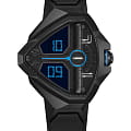 Швейцарские кварцевые часы Hamilton Ventura Edge Dune Limited Edition H24624330 созданы в тесном сотрудничестве с мастером по реквизиту фильма "Дюна: Часть вторая". Часы выполнены в стиле наручного устройства и имеют угловатый матово-черный угловой корпус с PVD-покрытиемPVDУльтратонкое покрытие наносится в технике вакуумного напыления, сочетает в себе нитрид титана особой прочности со слоем золота или оксида хрома. Несёт в себе декоративную или защитную функцию.. Их цифровой дисплей светится синим цветом, что указывает на безошибочно узнаваемые голубые глаза фременов, а циферблат имитирует рельефные элементы, которые мы можем видеть на реквизите в фильме. Циферблат оснащён дисплеем в двумя экранами: на верхнем отображаются часы, на нижнем – минуты. Большая заводная коронка оснащена кнопкой подсветки, которая гаснет с небольшой вспышкой, как и в оригинальных Desert Watch. Эта модель, выпущенная ограниченным тиражом, поставляется в памятной упаковке, вдохновленной фильмом, которую поклонники фильмов и книг, а также коллекционеры не захотят пропустить! На внутренней стороне коробки часов выгравированы слова знаменитой литании против страха.