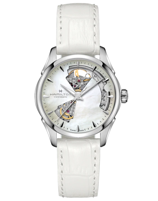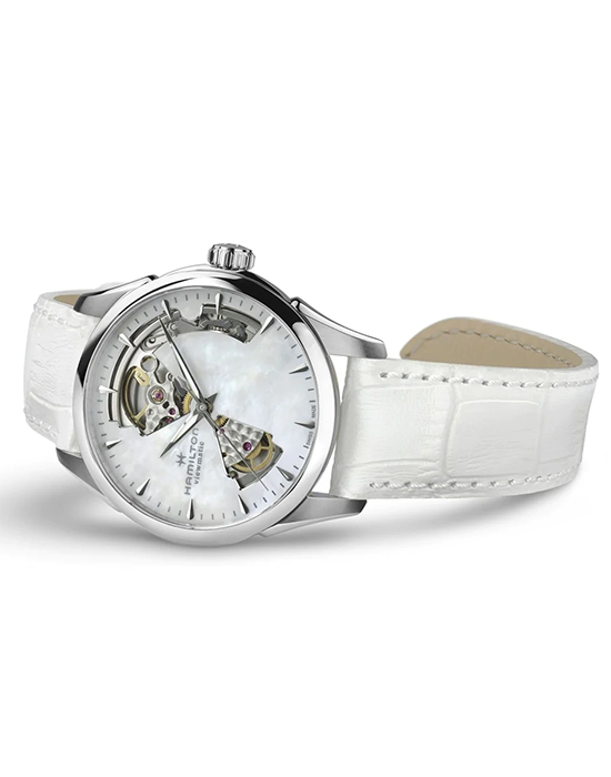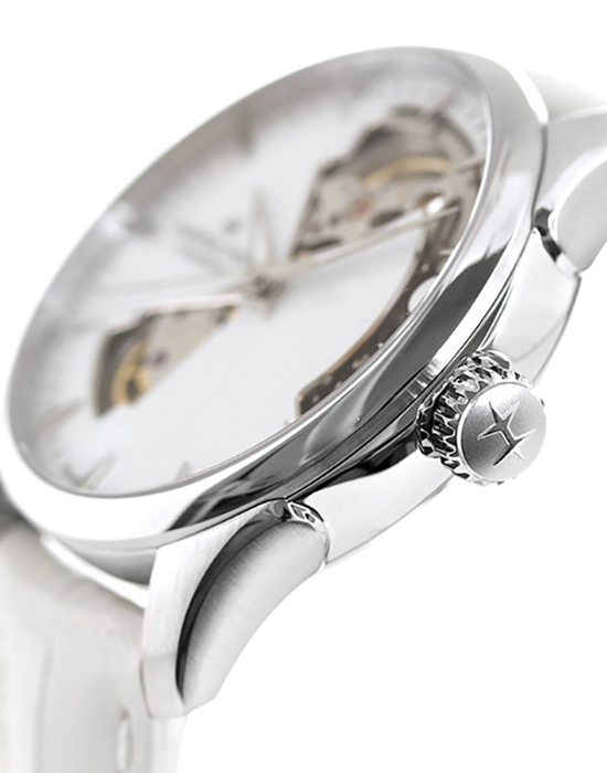 Женские механические швейцарские часы Hamilton Jazzmaster Open Heart Lady Auto H32215890, автоматический механизм с высокой точностью. Сапфировое стеклоСапфировое стеклоПрочный и надёжный материал из кристалла сапфира синтетического происхождения, характеризующийся особой твёрдостью и устойчивостью к царапинам и повреждениям. устойчивое к появлению царапин, обладающее высокой прозрачностью. Класс водозащиты: 50 метров, позволит защитить корпус от случайных брызг или капель дождя. Корпус часов изготовлен из нержавеющей стали. Стрелки с люминесцентным покрытиемЛюминесцентное покрытиеПозволяет считывать показания времени в темноте. Производители наносят на стрелки, часовые индексы, безель или поверхность циферблата светонакопительный состав, дающий холодное свечение..