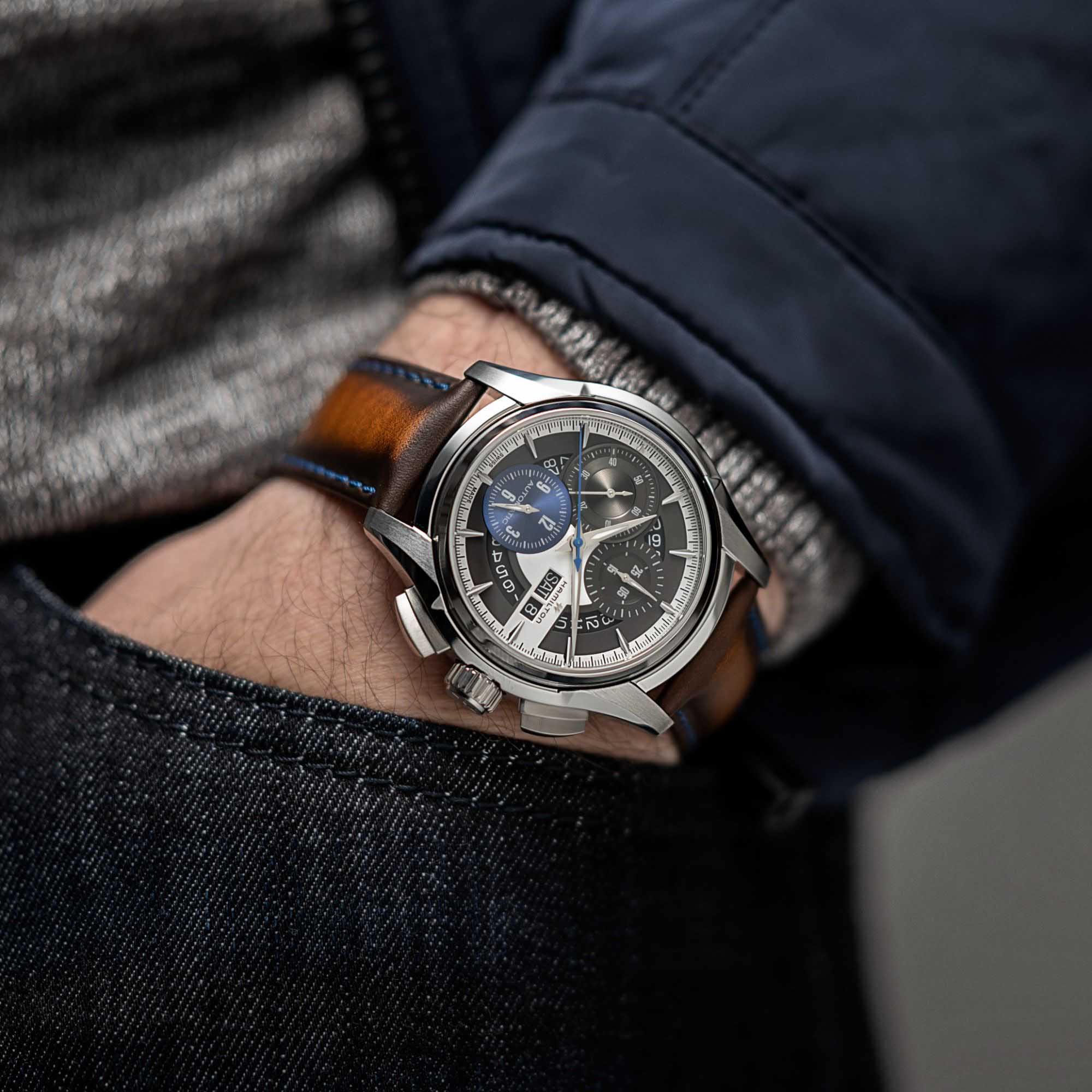 Сочетание неординарного стиля и классики: Jazzmaster Face-to-Face III это синоним совершенства в квадрате. В лимитированную серию из 999 экземпляров входят часы с двусторонним корпусом и двумя вариантами циферблата – один позволяет замерять отрезки времени и отображать текущее время, а дугой дополнен измерительными шкалами и видимым механизмом. Модель Jazzmaster Face-to-Face III, сочетающаяся с коричневым кожаным ремешком с отделкой под патину, выходит за рамки установленных правил благодаря нестандартным инновационным решениям и традиционному дизайну.