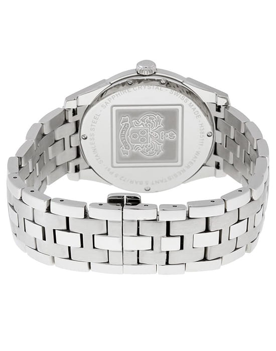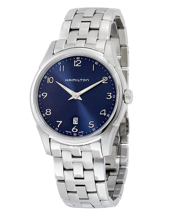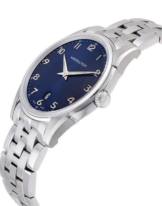 Мужские швейцарские часы Hamilton Jazzmaster Thinline Quartz H38511143, кварцевый механизм с высокой точностью. Сапфировое стеклоСапфировое стеклоПрочный и надёжный материал из кристалла сапфира синтетического происхождения, характеризующийся особой твёрдостью и устойчивостью к царапинам и повреждениям. устойчивое к появлению царапин, обладающее высокой прозрачностью. Класс водозащиты: 50 метров, позволит защитить корпус от случайных брызг или капель дождя. Корпус часов изготовлен из стали. Стальной браслет на раскладной застёжкеРаскладная застёжкаТакой тип застёжки используется только на браслетах из металла. Она никогда не раскрывается полностью, происходит разделение на 2 и более частей. Раскладывающая застёжка снизит вероятность потери часов к минимуму.. Стрелки с люминесцентным покрытиемЛюминесцентное покрытиеПозволяет считывать показания времени в темноте. Производители наносят на стрелки, часовые индексы, безель или поверхность циферблата светонакопительный состав, дающий холодное свечение..