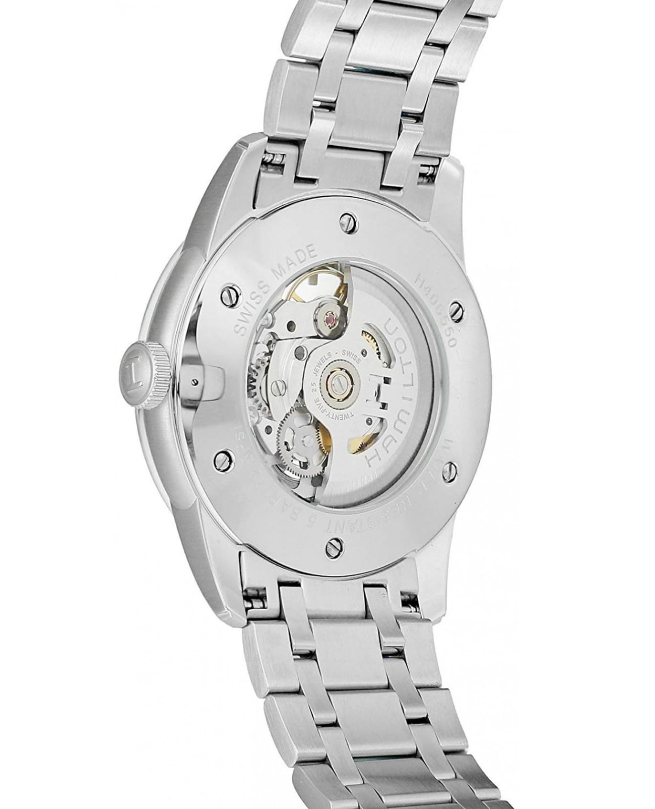 Мужские механические швейцарские часы Hamilton American Classic RailRoad Skeleton Auto H40655151, механический механизм (автоматический калибр) с высокой точностью. Сапфировое стекло устойчивое к появлению царапин, обладающее высокой прозрачностью. Класс водозащиты: 50 метров, позволит защитить корпус от случайных брызг или капель дождя. Корпус часов изготовлен из стали, цвета.