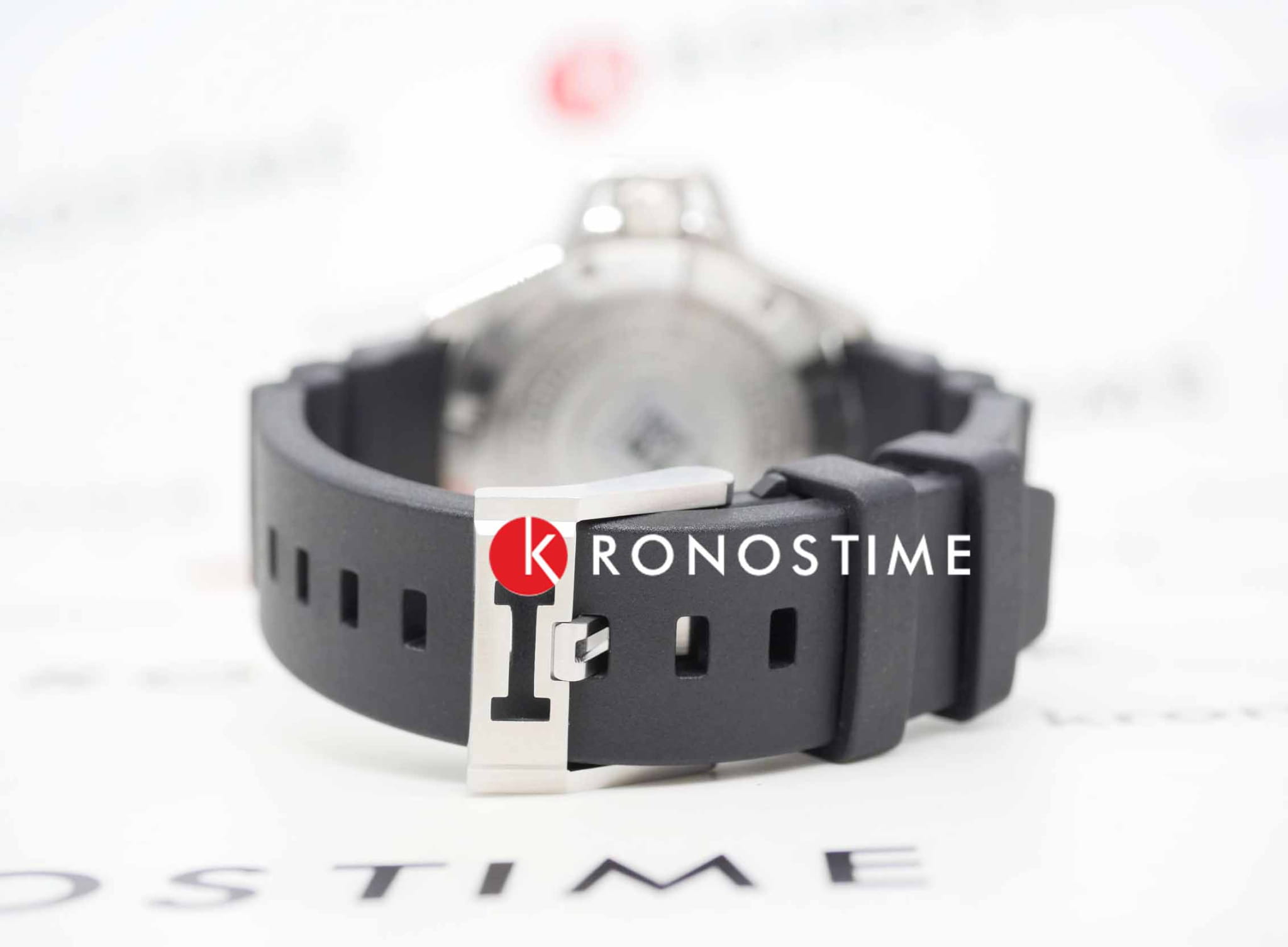 Мужские часы Hamilton Khaki Navy Frogman Auto H77455330 с автоматическим механизмом. Корпус часов выполнен из нержавеющей стали. Вращающийся безельБезельВнешний ободок, закрепляющий стекло. В спортивных часах так называется поворотное кольцо с делениями на циферблате, выполняет роль таймера – замеряет отрезки времени на шкале. Неподвижный безель – элемент декора. Однонаправленно вращающийся безель на дайверских часах позволяет фиксировать моменты погружения и выныривания на поверхность. с PVD-покрытиемPVDУльтратонкое покрытие наносится в технике вакуумного напыления, сочетает в себе нитрид титана особой прочности со слоем золота или оксида хрома. Несёт в себе декоративную или защитную функцию.. Практичный браслет из каучука на раскладной застёжкеРаскладная застёжкаТакой тип застёжки используется только на браслетах из металла. Она никогда не раскрывается полностью, происходит разделение на 2 и более частей. Раскладывающая застёжка снизит вероятность потери часов к минимуму.. Сапфировое стеклоСапфировое стеклоПрочный и надёжный материал из кристалла сапфира синтетического происхождения, характеризующийся особой твёрдостью и устойчивостью к царапинам и повреждениям. с антибликовым покрытием. Стрелки и метки с люминесцентным покрытиемЛюминесцентное покрытиеПозволяет считывать показания времени в темноте. Производители наносят на стрелки, часовые индексы, безель или поверхность циферблата светонакопительный состав, дающий холодное свечение.. Уровень влагозащиты: 300 метров, позволит плавать, нырять и заниматься другими водными видами спорта.
