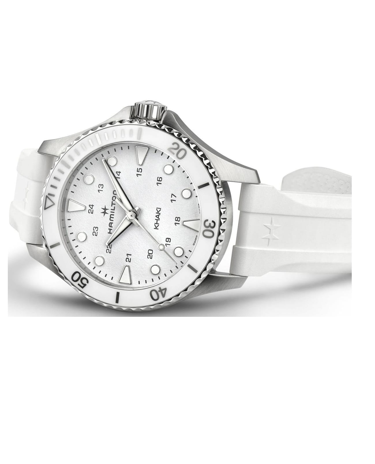 Мужские швейцарские часы Hamilton Khaki Navy Scuba Quartz H82221310, кварцевый механизм с высокой точностью. Сапфировое стеклоСапфировое стеклоПрочный и надёжный материал из кристалла сапфира синтетического происхождения, характеризующийся особой твёрдостью и устойчивостью к царапинам и повреждениям. устойчивое к появлению царапин, обладающее высокой прозрачностью. Класс водозащиты: 100 метров, позволит плавать, нырять и заниматься другими водными видами спорта. Корпус часов изготовлен из нержавеющей стали. Каучуковый ремешок. Стрелки и метки с люминесцентным покрытиемЛюминесцентное покрытиеПозволяет считывать показания времени в темноте. Производители наносят на стрелки, часовые индексы, безель или поверхность циферблата светонакопительный состав, дающий холодное свечение..